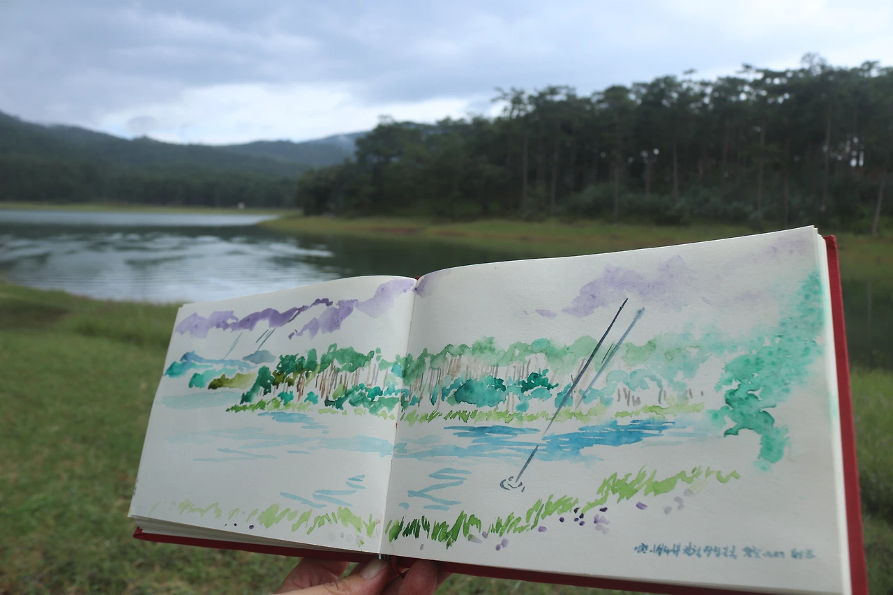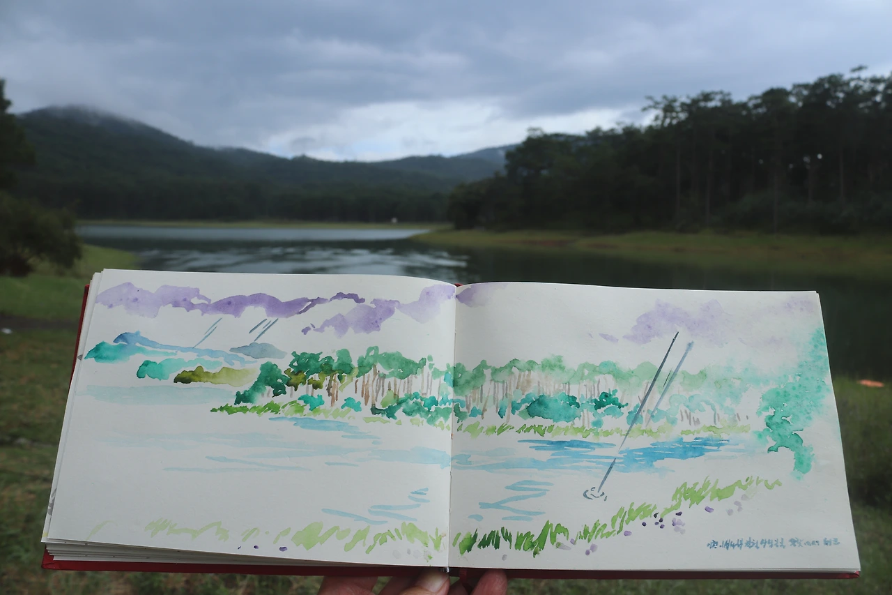 다음 코스인 '진흙공원'에는 들어가진 않고 '투엔람 호수'를 스케치하러 간다.