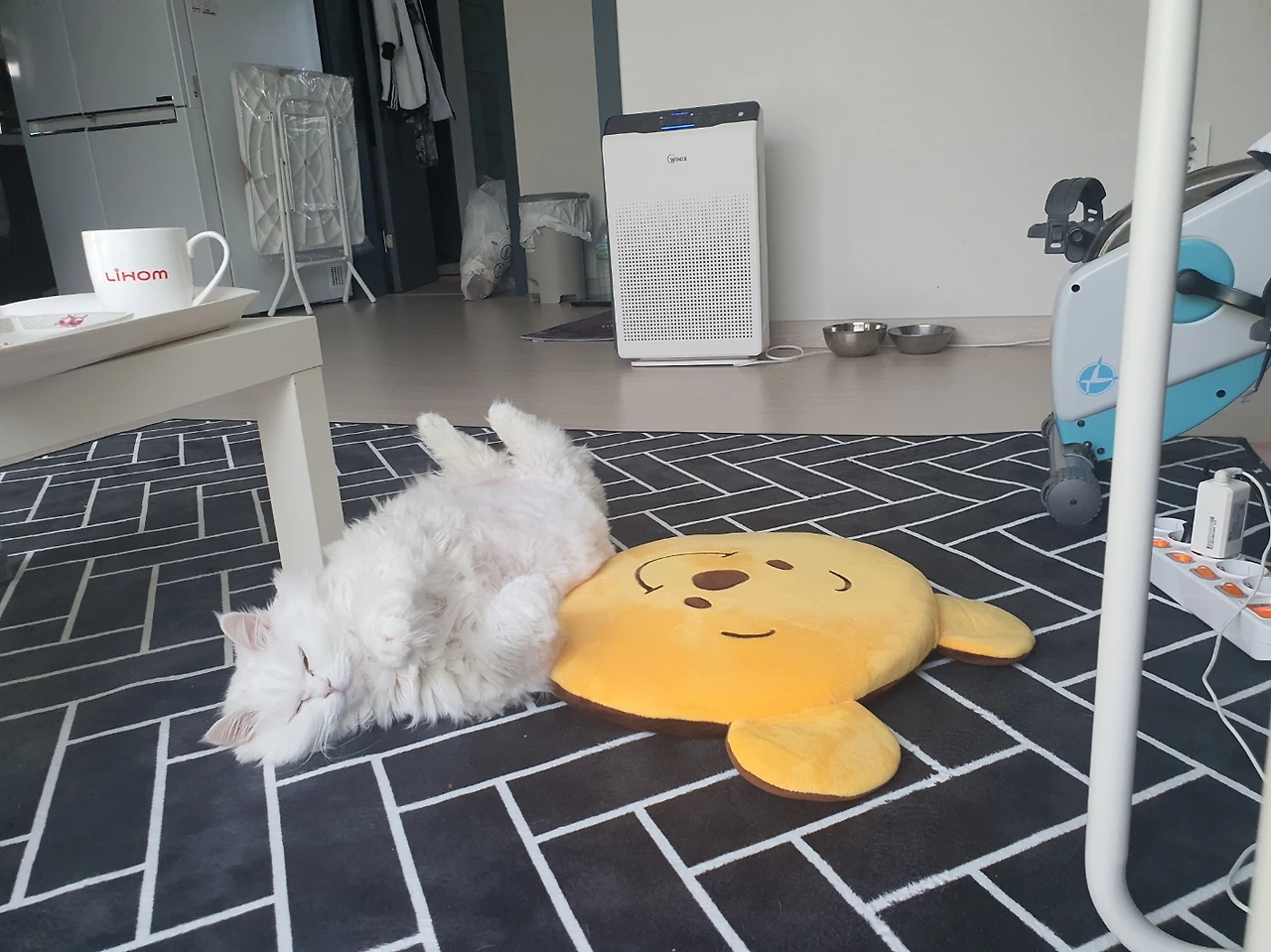 그녀가 무지개다리를 건너기 한 달 전 항상 머리맡에서 잠을 청했기에 도도한 아가씨가 살가운 면도 있었나 싶었는데 다리를 건너기 일주일 전부터 오히려 더 구석의 방해받지 않은 자리로 공간을 옮기더니 몸에 힘이 마법에 걸린 듯 스르르 빠지는 것이 갑작스러운 죽음의 마법에 걸린 듯 걷는 것조차 힘겨워하더니 주저앉고 말았다.