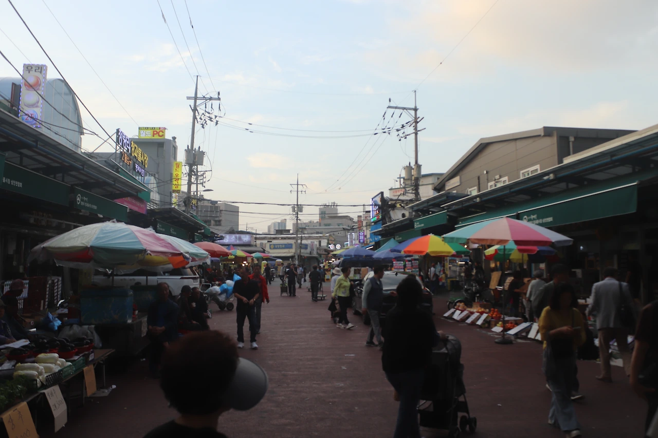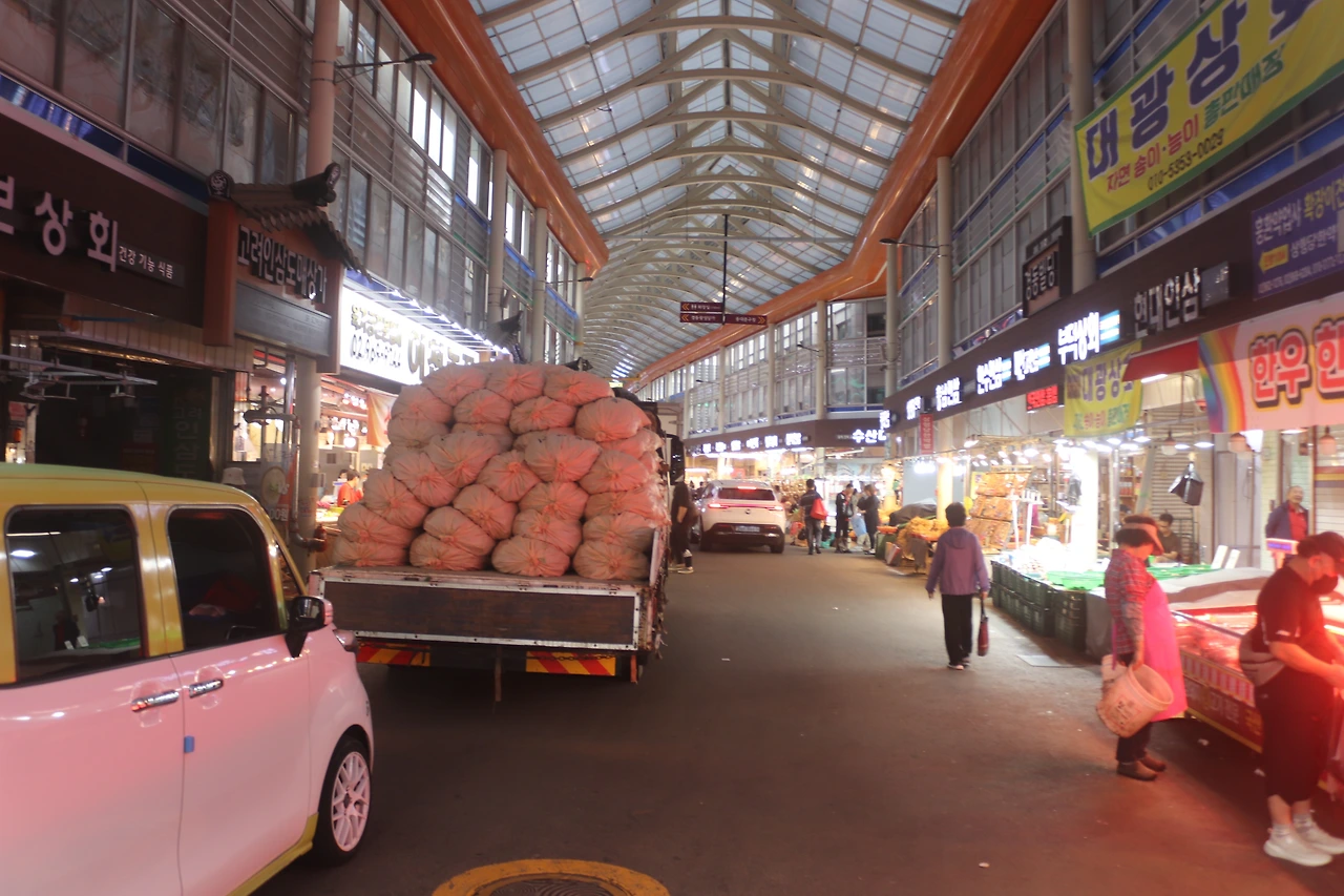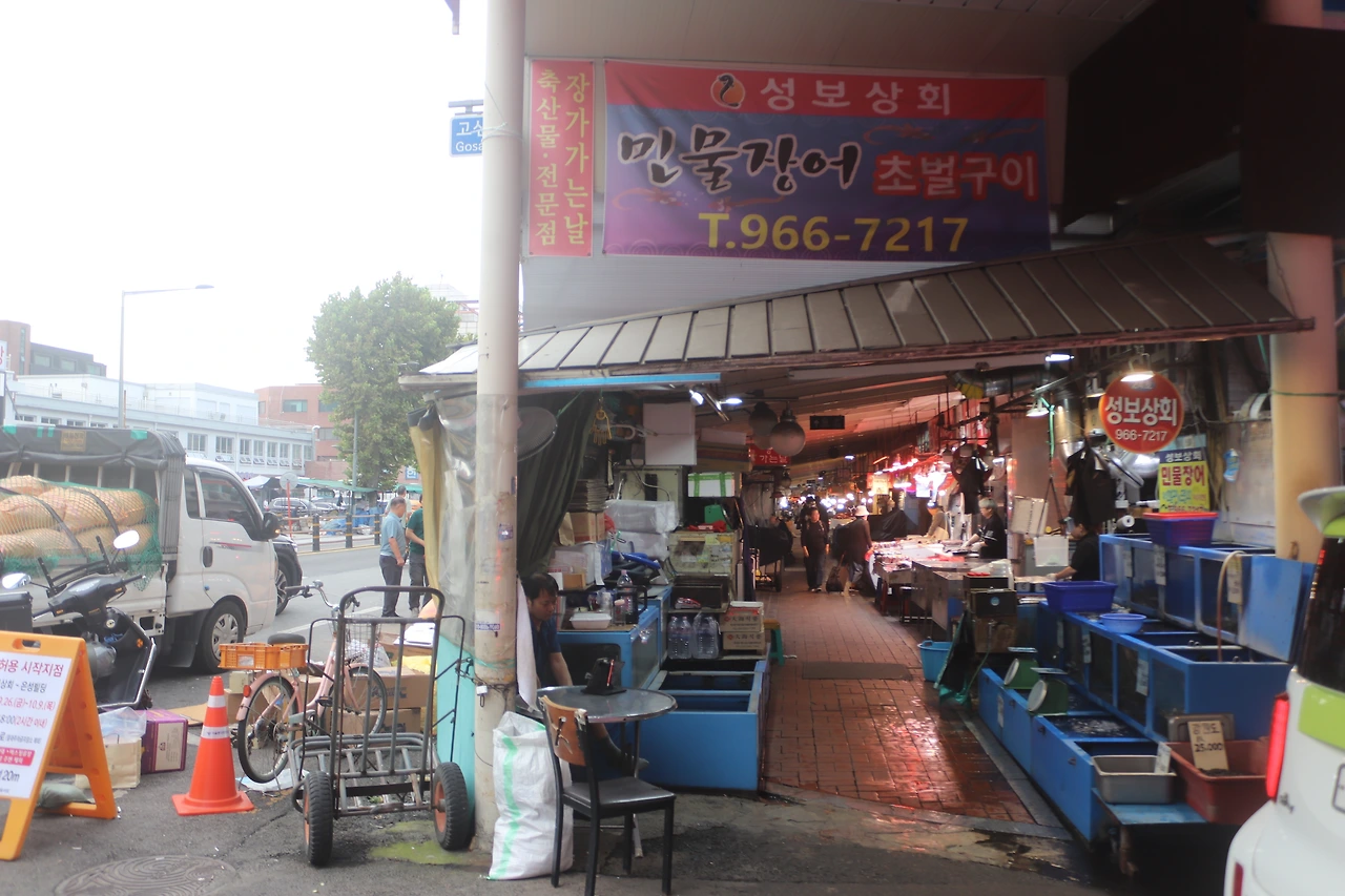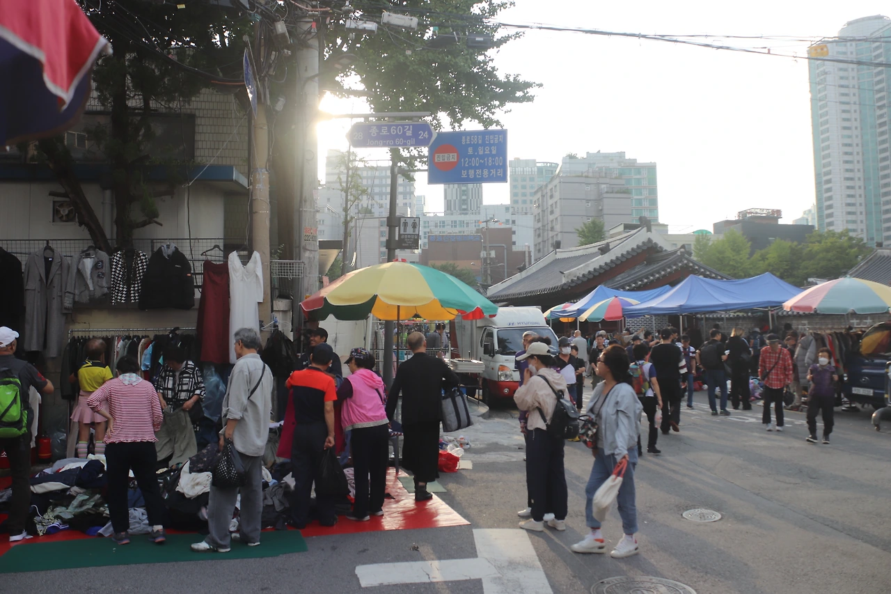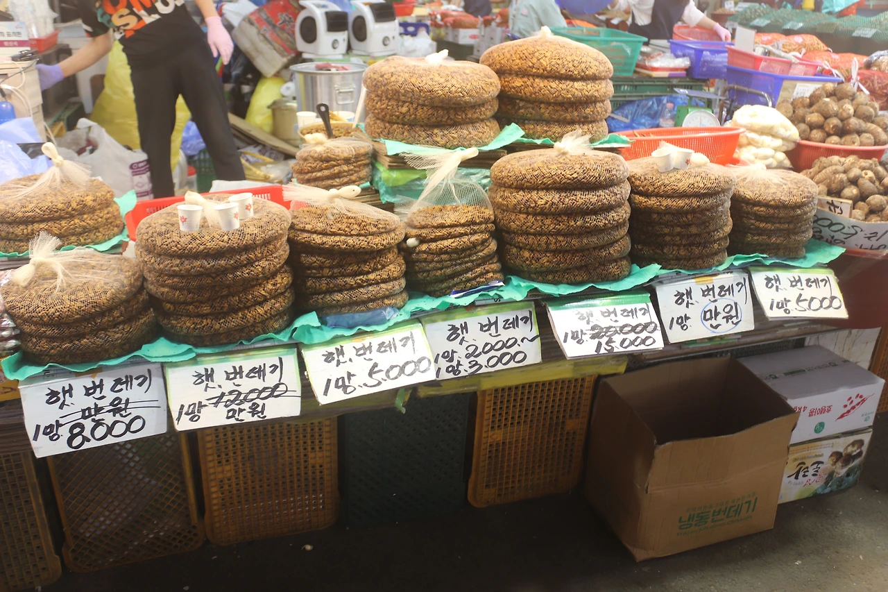 동부 간선도로 밑으로 지나 '제기동 약령시장'에서 약재 냄새를 맡으며 지나 '경동시장'에서 구경하다 번데기를 구입한다.