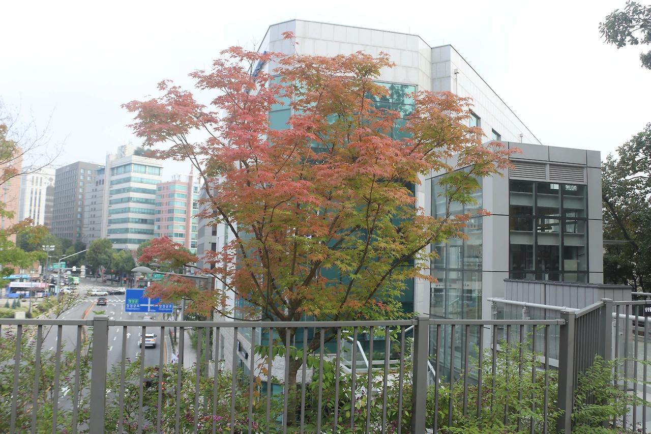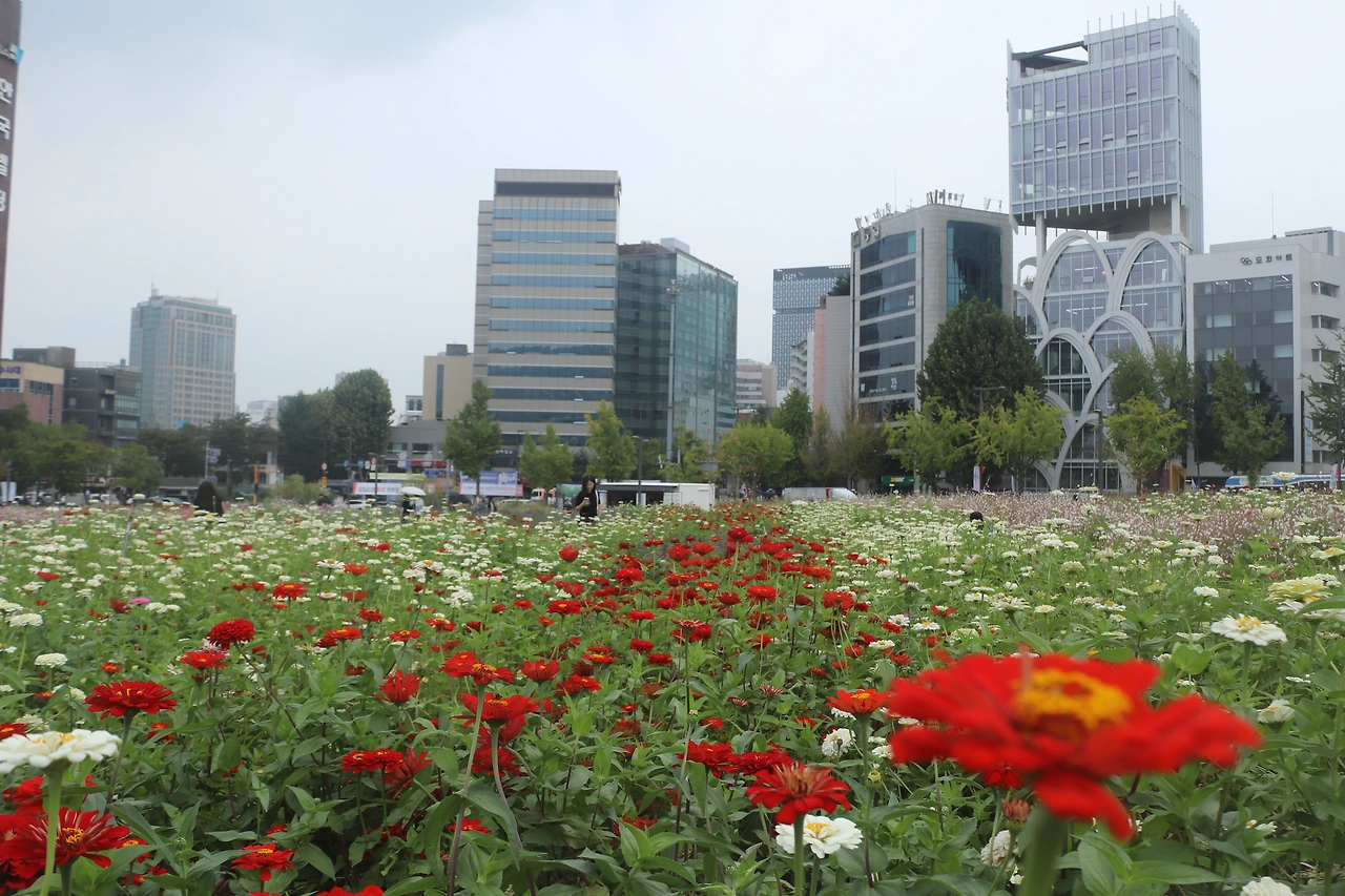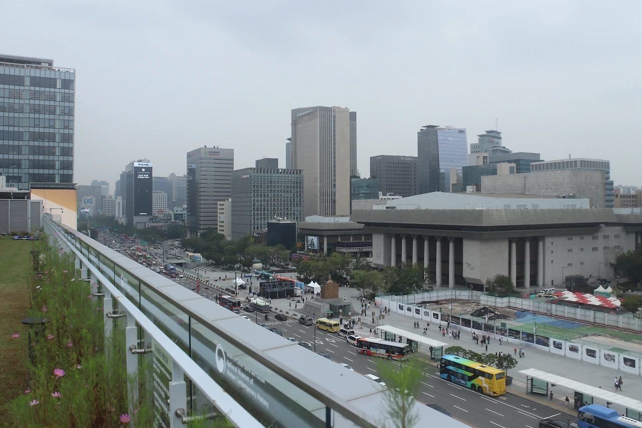 '옥상 전망대'에서 아기자기한 꽃들과 함께 광화문 사거리 풍광이 한눈에 들어온다.