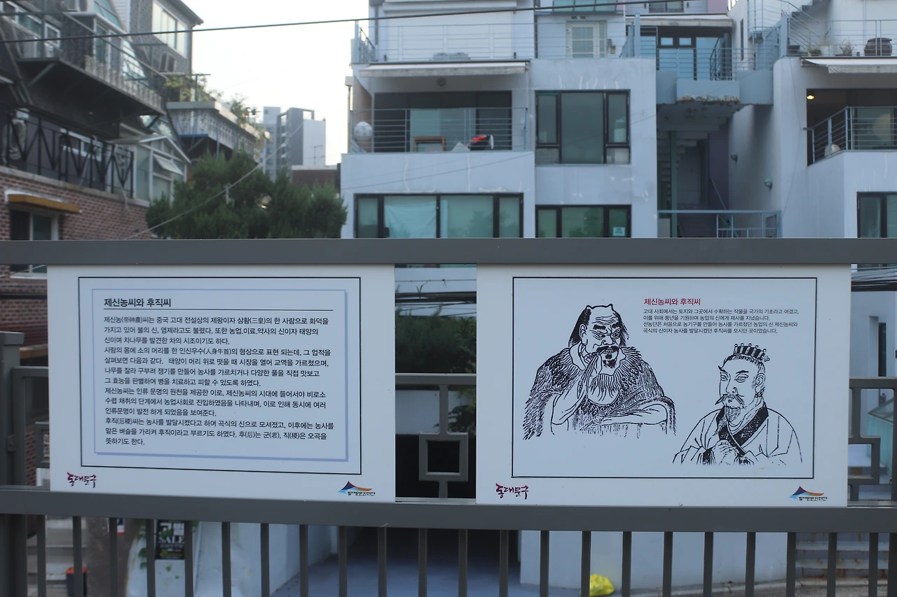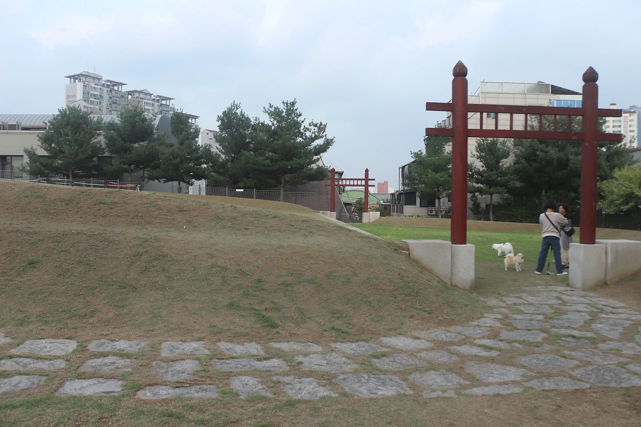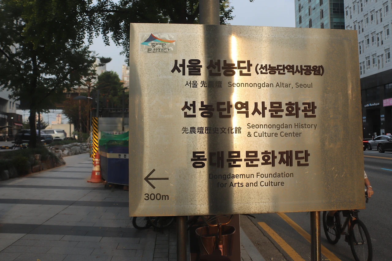 커다란 간판에 '선농단'이 있던 터 가 있다고 해서 300여 미터 올라가니 양쪽 키 큰 가로수들이 만들어 주는 그늘을 통해 옛날 조선사대 농사의 신에게 왕이 제사를 지내던 그 선농단이 그 세월을 짐작케 하는 향나무와 공원처럼 자리하고 있다.