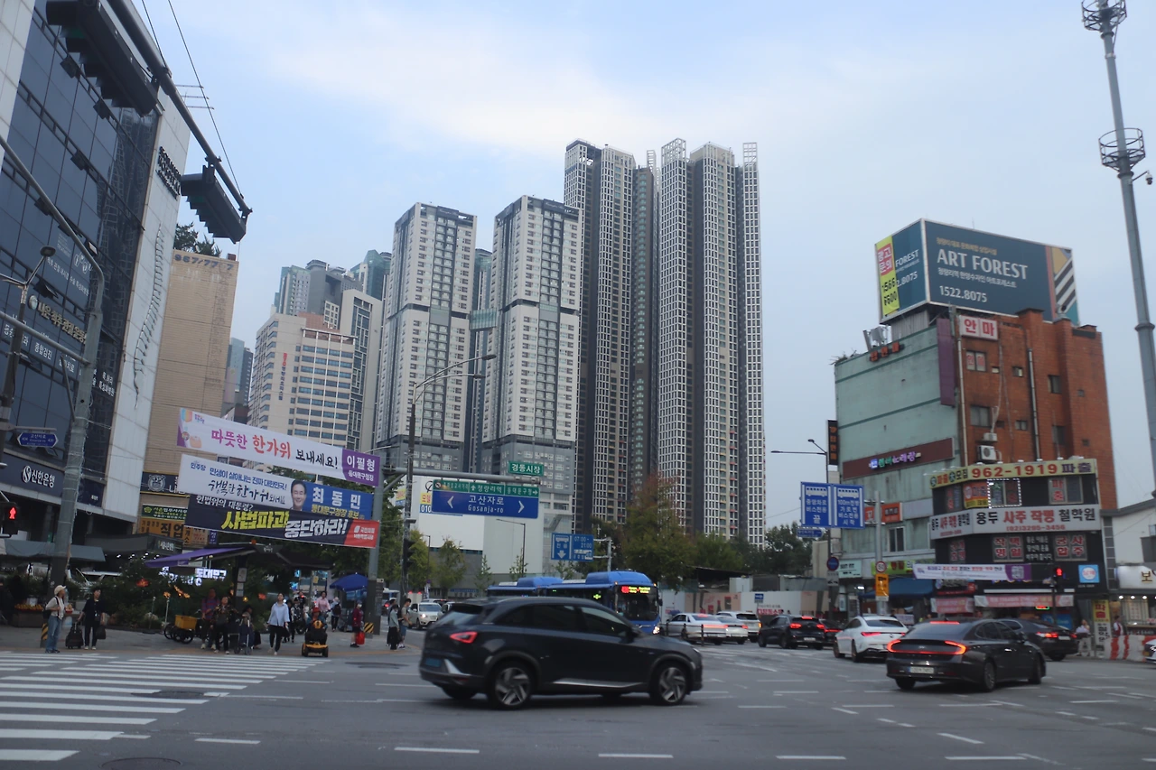 초고층 아파트가 집창촌이 있던 자리에 자리하고 있어 새로운 동네가 되어버란듯하다.