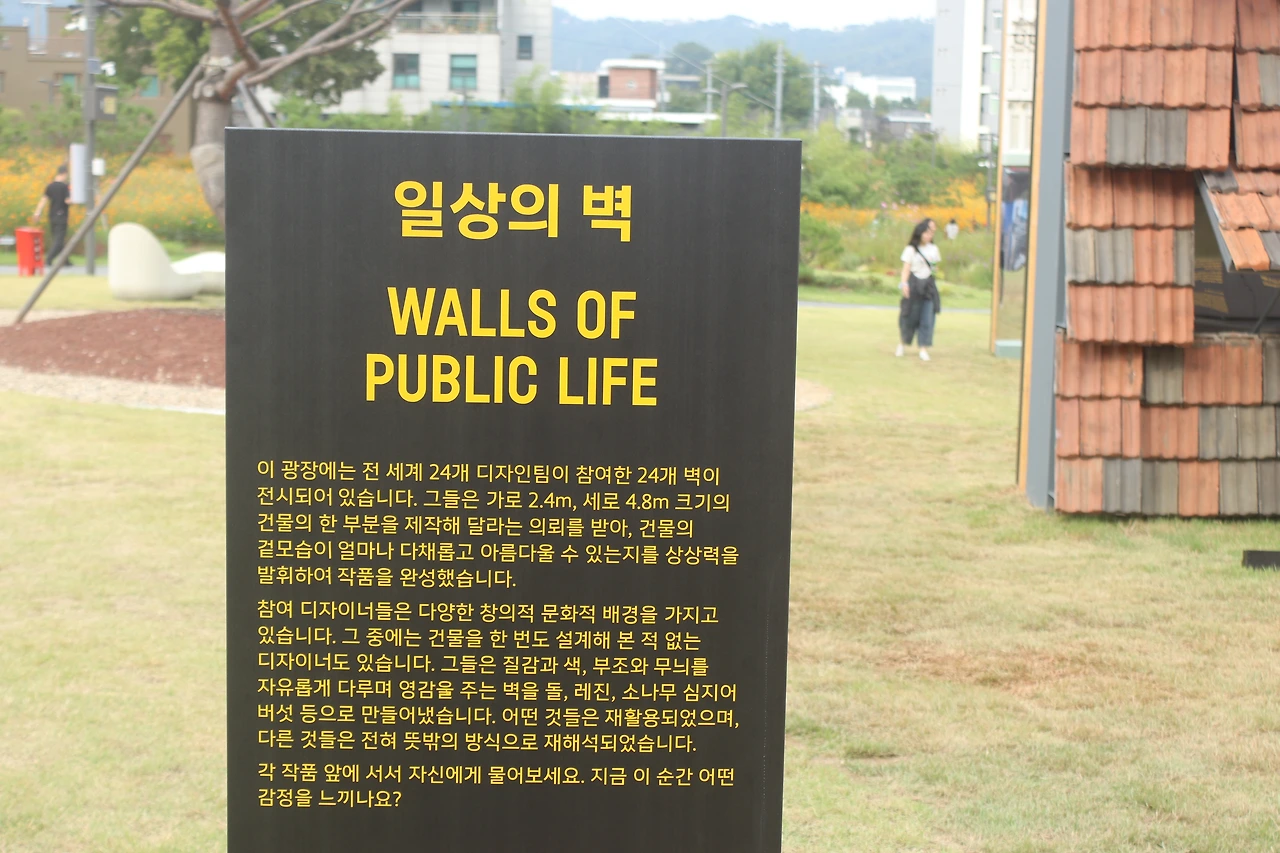 나무로 된 담과 항아리들로 구성된 담, 규칙적인 물과의 소통으로 이루어진 담 등 많은 소재의 담들이 전시 중이다.