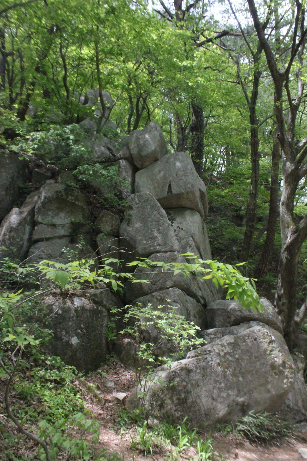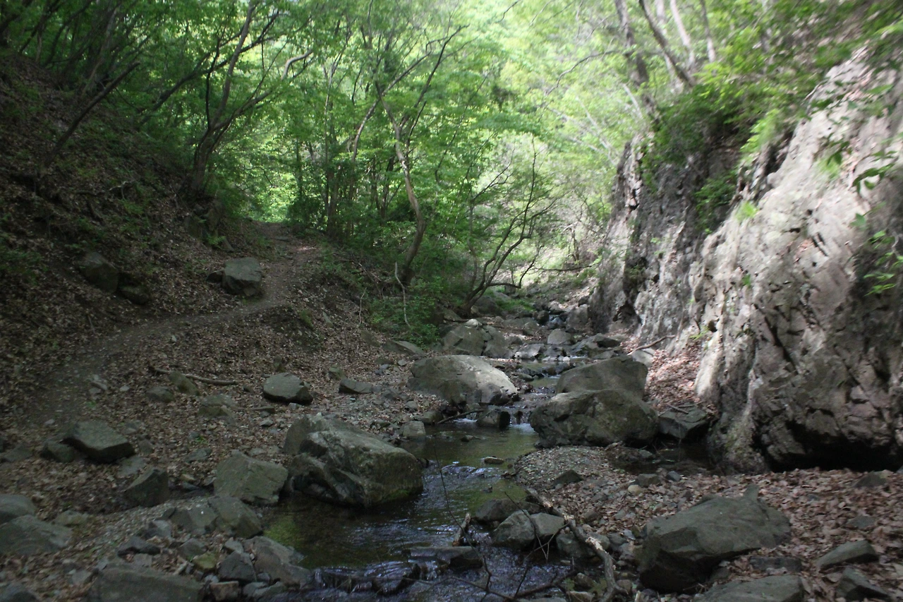 골짜기 사이로 들어가니 물소리와 시원한 바람이 에어컨과 비교도 안된다. 앉아서 사과를 하나씩 베어 먹고 맑은 물소리를 듣고 있자니 신선이 따로 없다. 조심히 올라가 다시 산행을 시작한다...