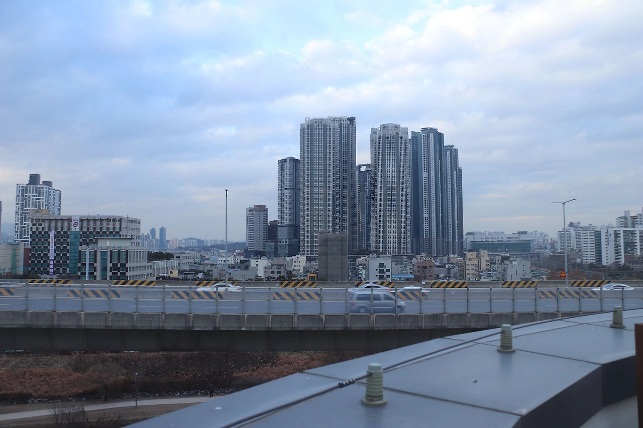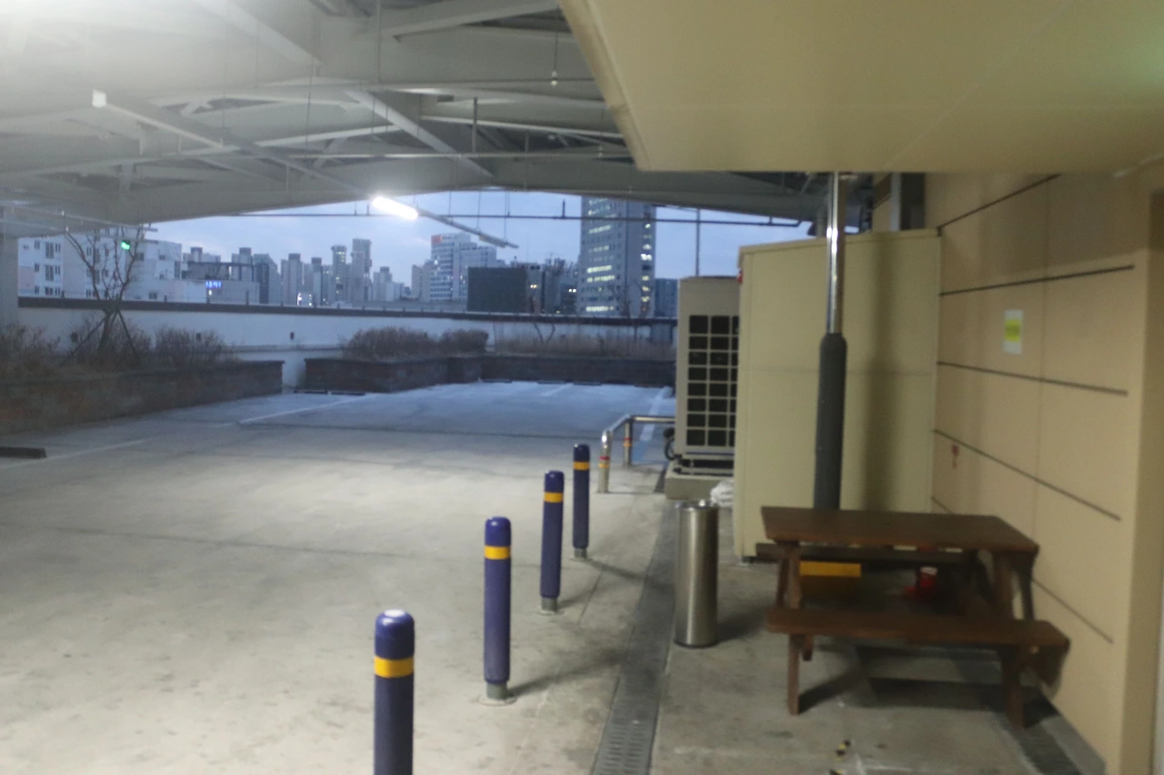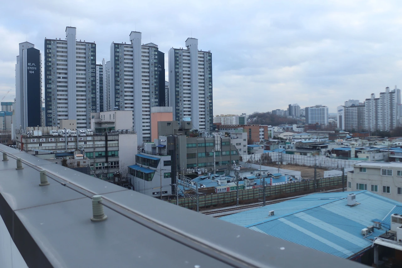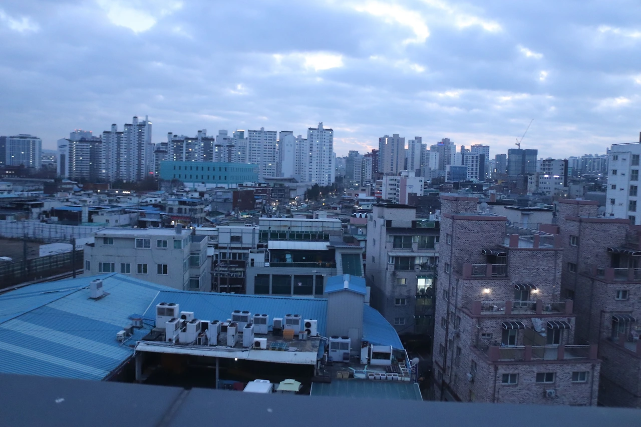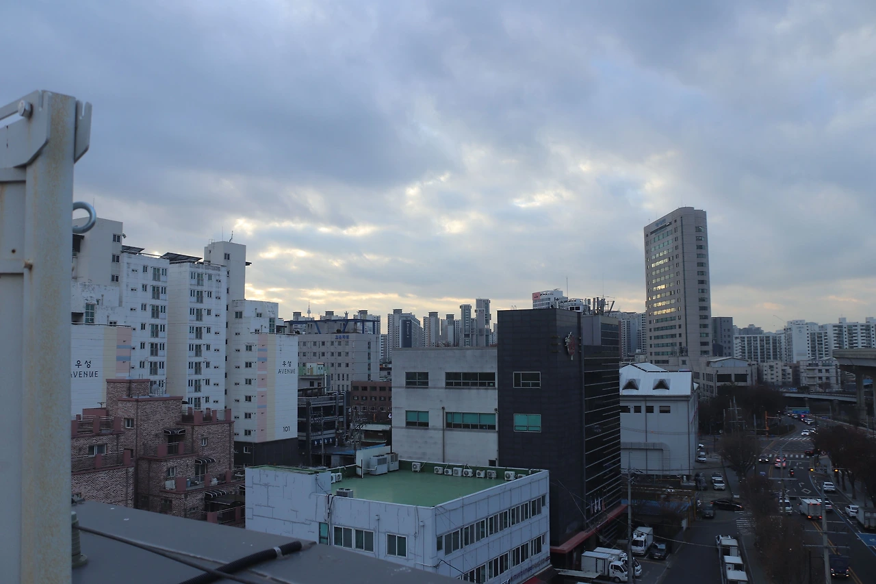 주차장 건물이기도 상가건물이 기도 한 그곳 옥상에서 바라보는 뷰는 또 다른 공간을 그리고 있다