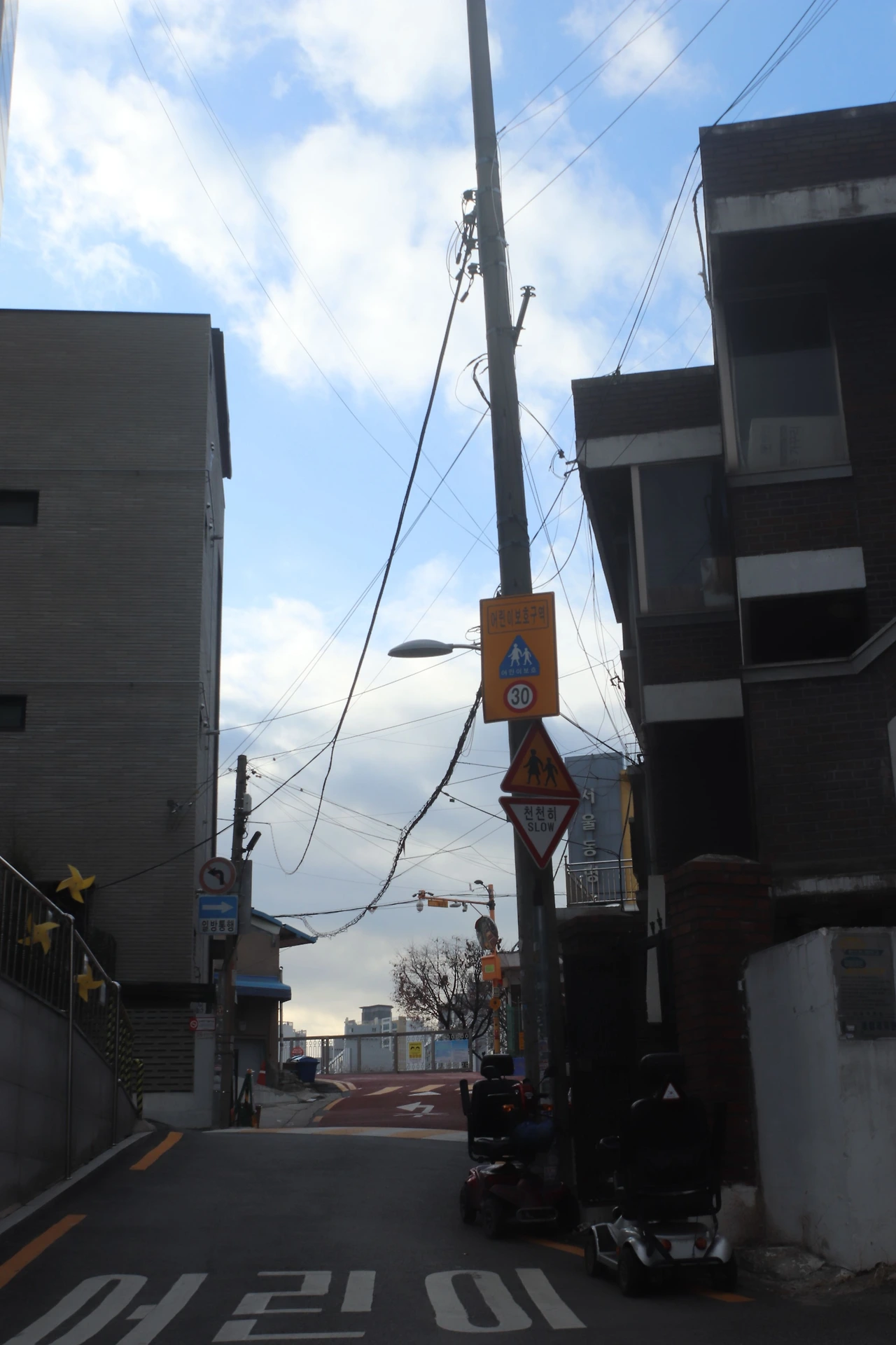 우리나란 산과 언덕이 많은 나라라 집들이 울퉁불퉁한 오르막 내리막길에 잘도 지었다.