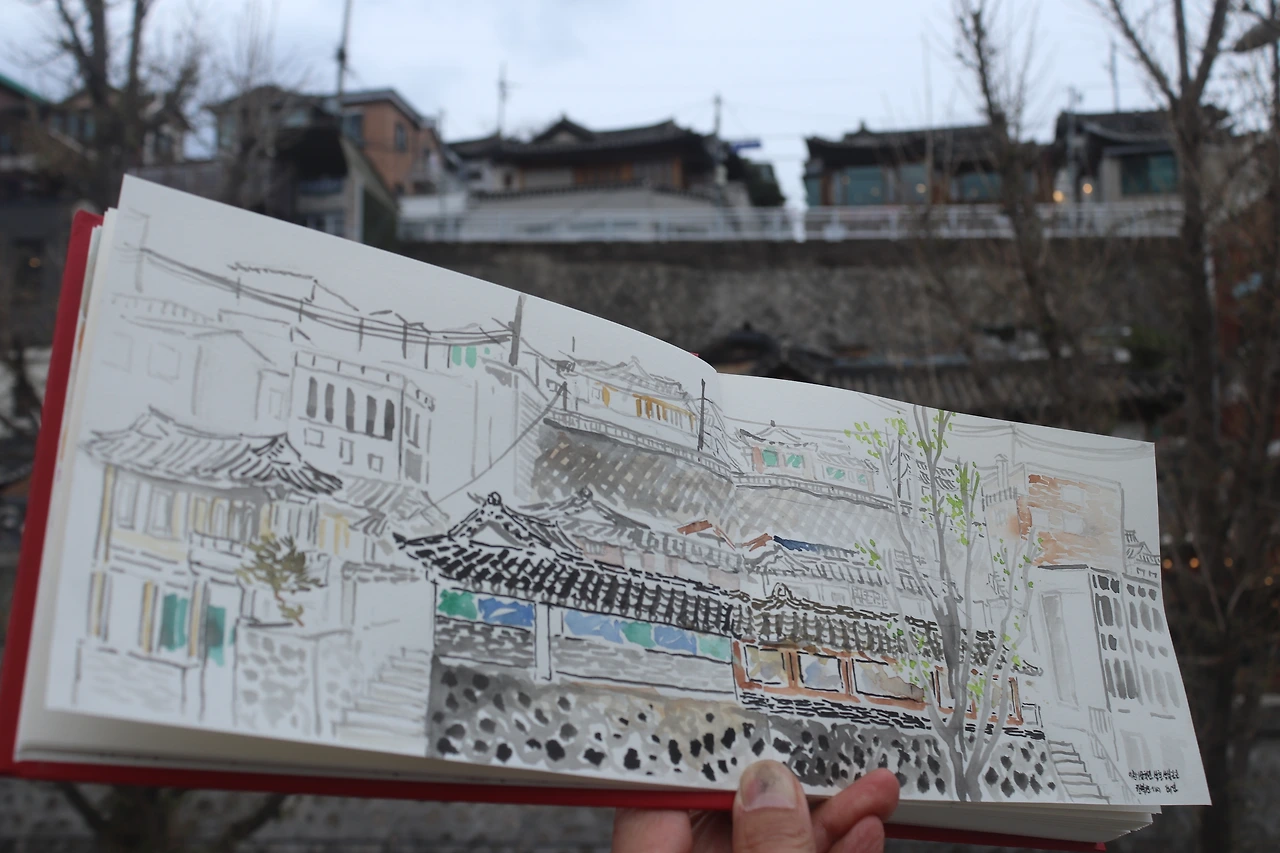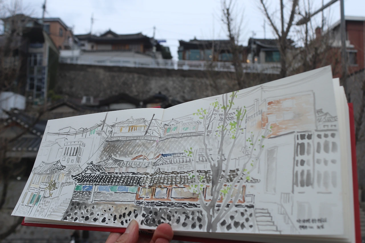 김제덕초상, 봄꽃, 삼청동풍경화, 어반스케치, 한국화
