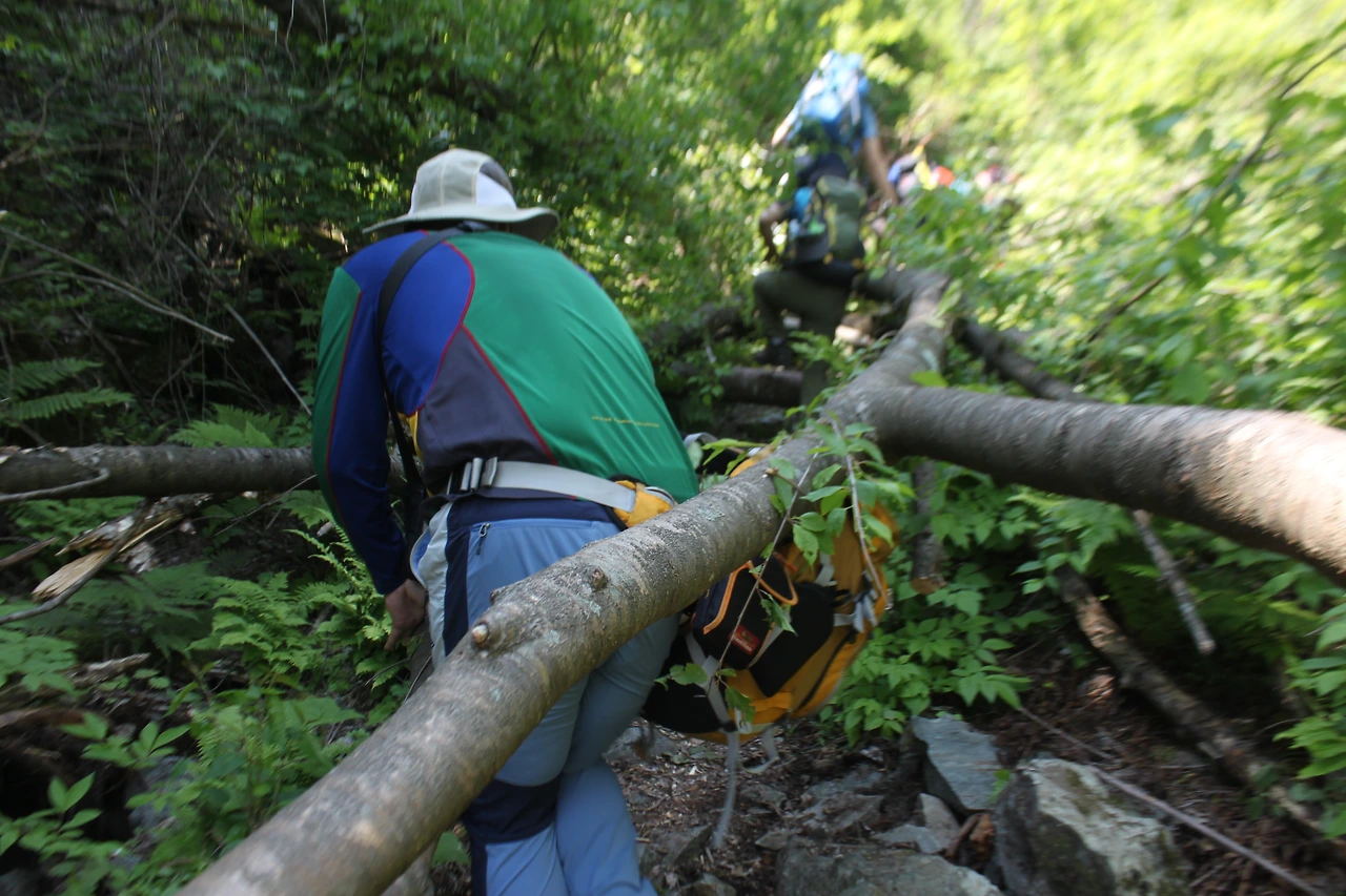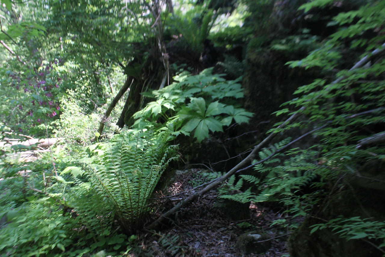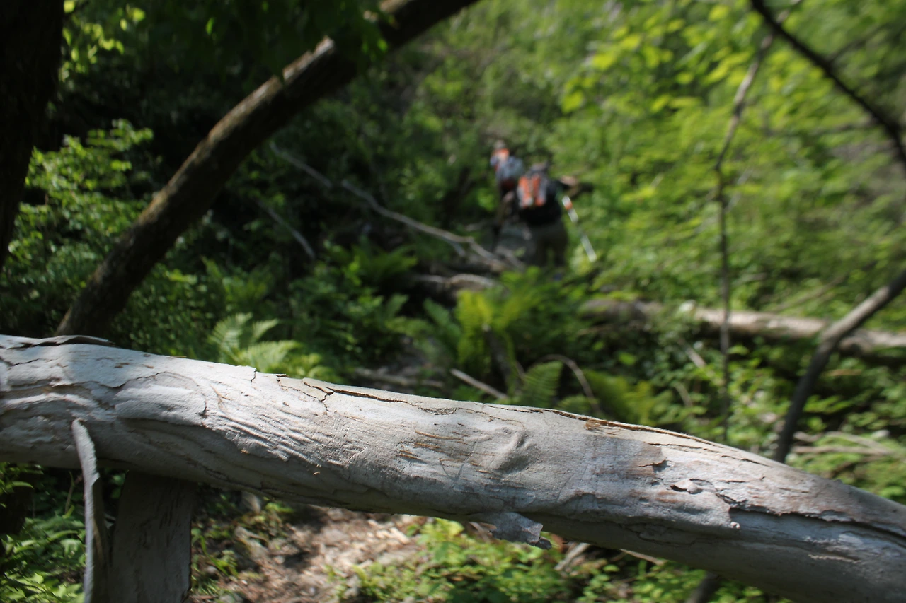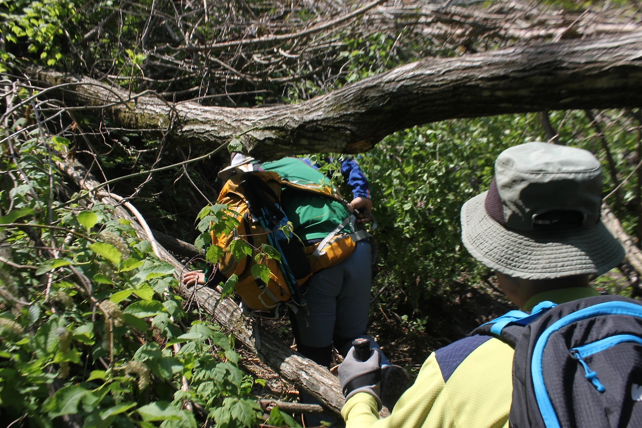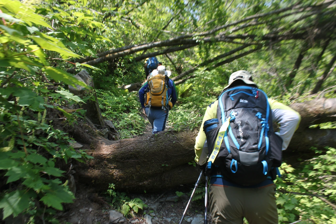1월부터 5월까지 입산 통제되어있던 곳이라 고사리를 채취하지 않아 '고비'들이 천지로 피어있고, 나무들이 수백여구 쓰러져 있어 나무를 올라타기도 하고, 나무 밑을 기어가기도 하면서 밀림을 헤쳐나가며 거친 산행을 해야 했다.
