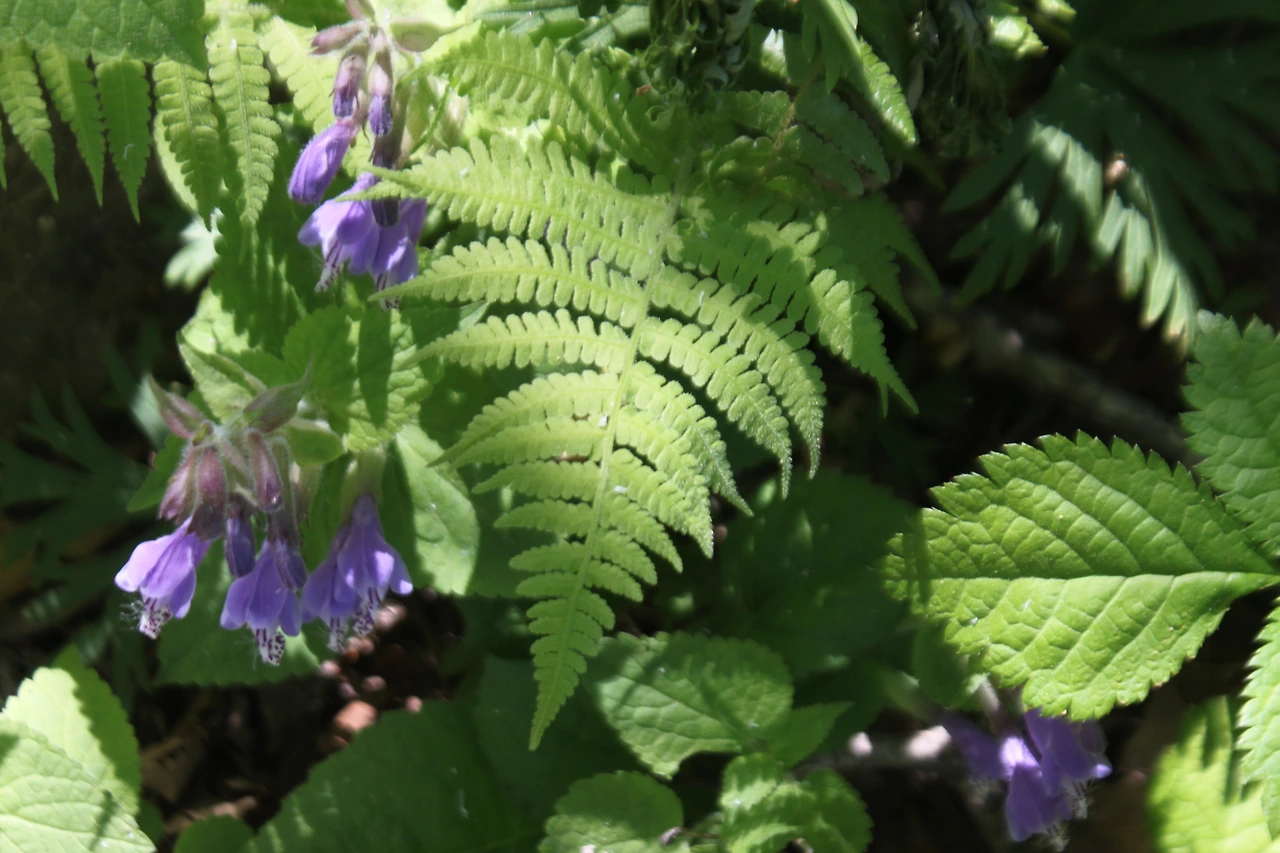 길가에는 '수달래 꽃'이 활짝 피어 있고, '고사리' 도 나무처럼 튼실하게 펼쳐져 있다.