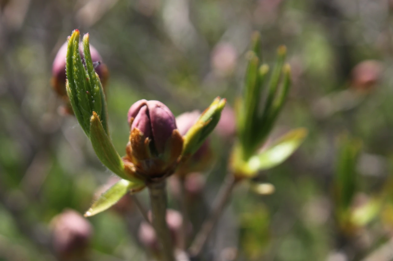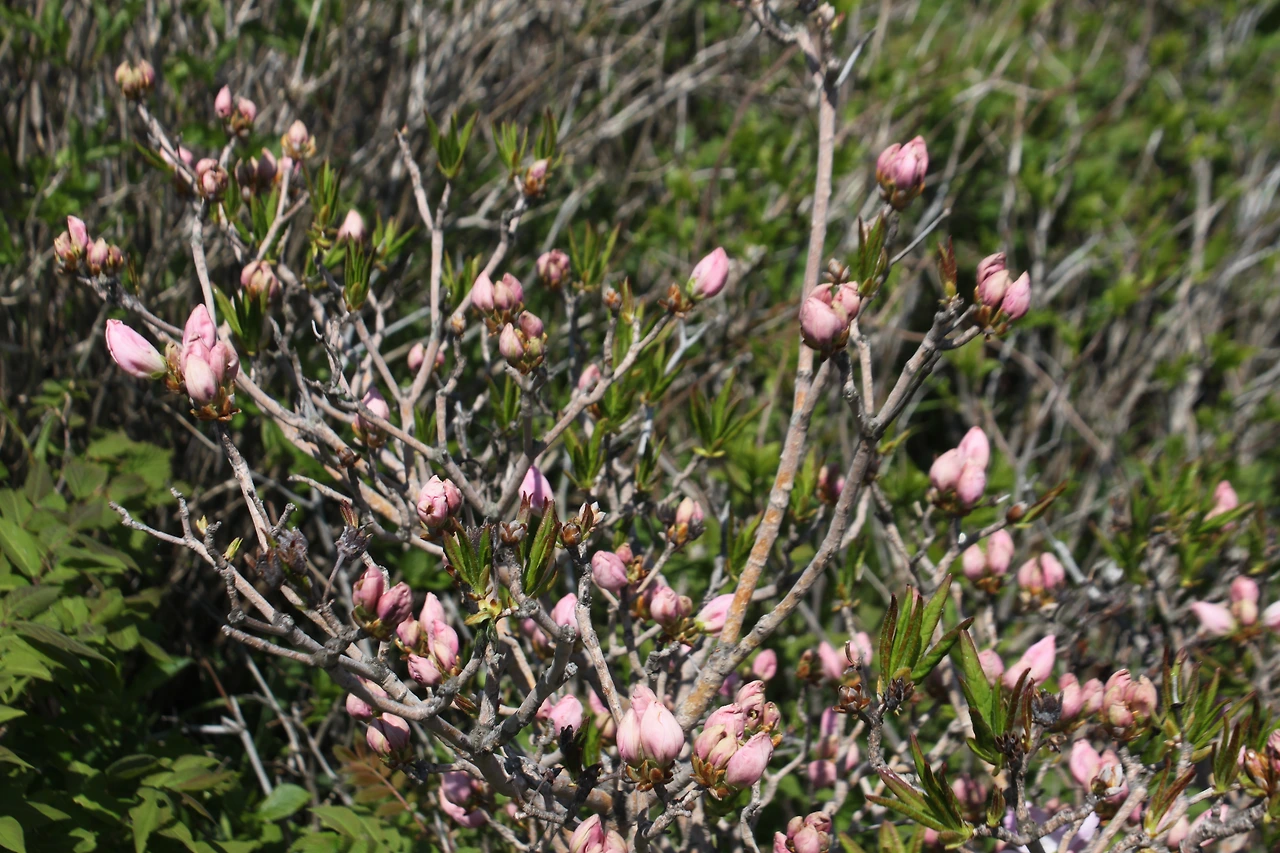 정상에 다다를수록 고비는 점점 덜 피어 있고, 수달래 꽃은 수줍은 꽃봉오리를 맺고 있다.