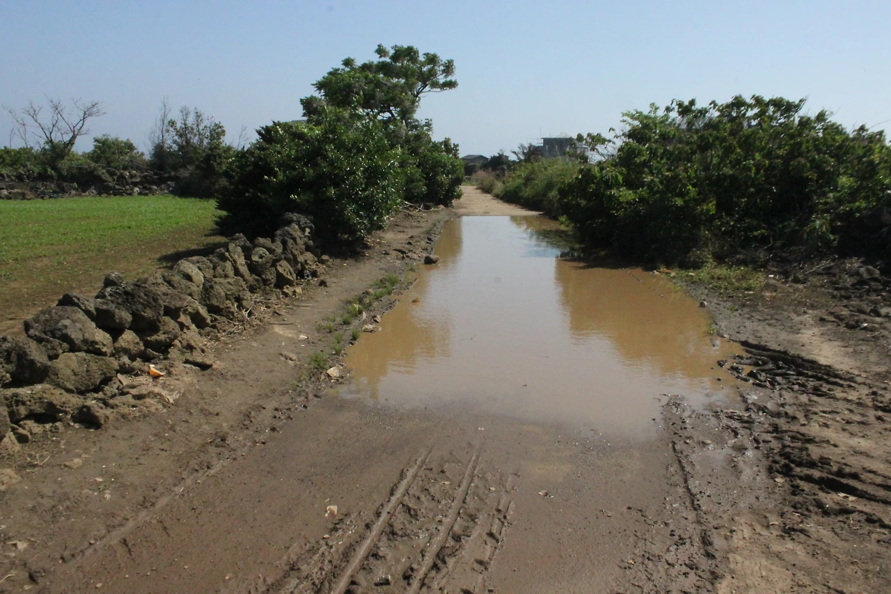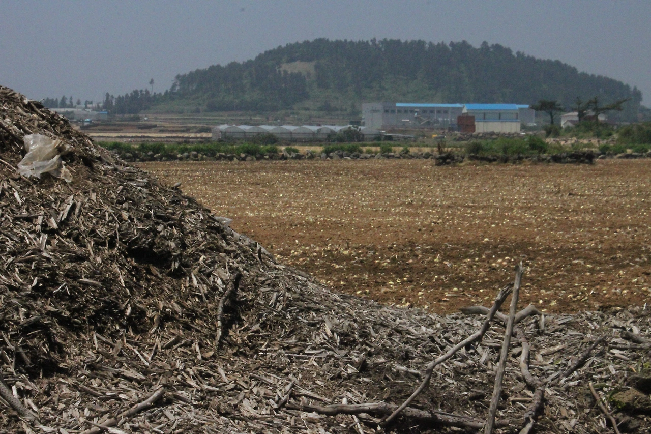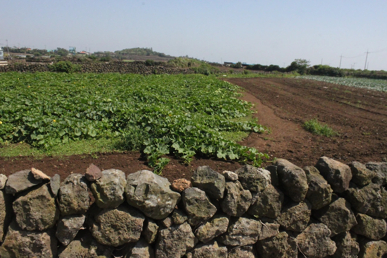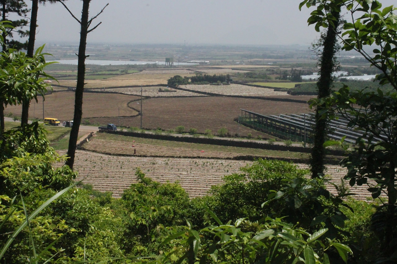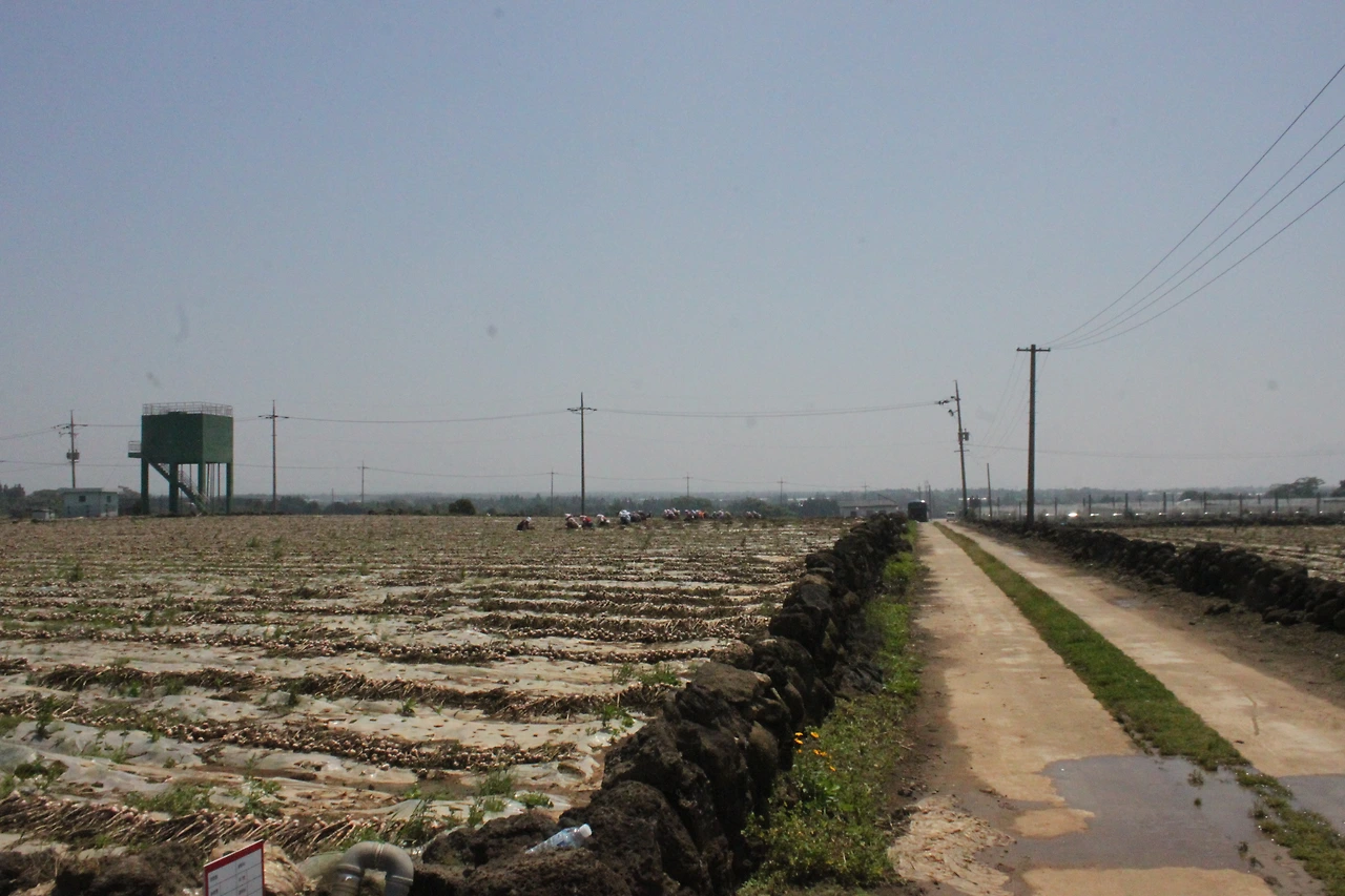 나중에 동네분께 들은 이야기로 제주 서쪽지방이 흙이 좋지 않아 마늘 같은 작물이 잘되고, 강정 쪽이 비옥하기로 소문난 흙이란다. 그래서 그런지 여기는 마늘을 재배하고 있다. 마늘밭을 넘고 넘어 '태양발전소'가 있는 지역을 지나 '신도 생태연못'에 도달한다.