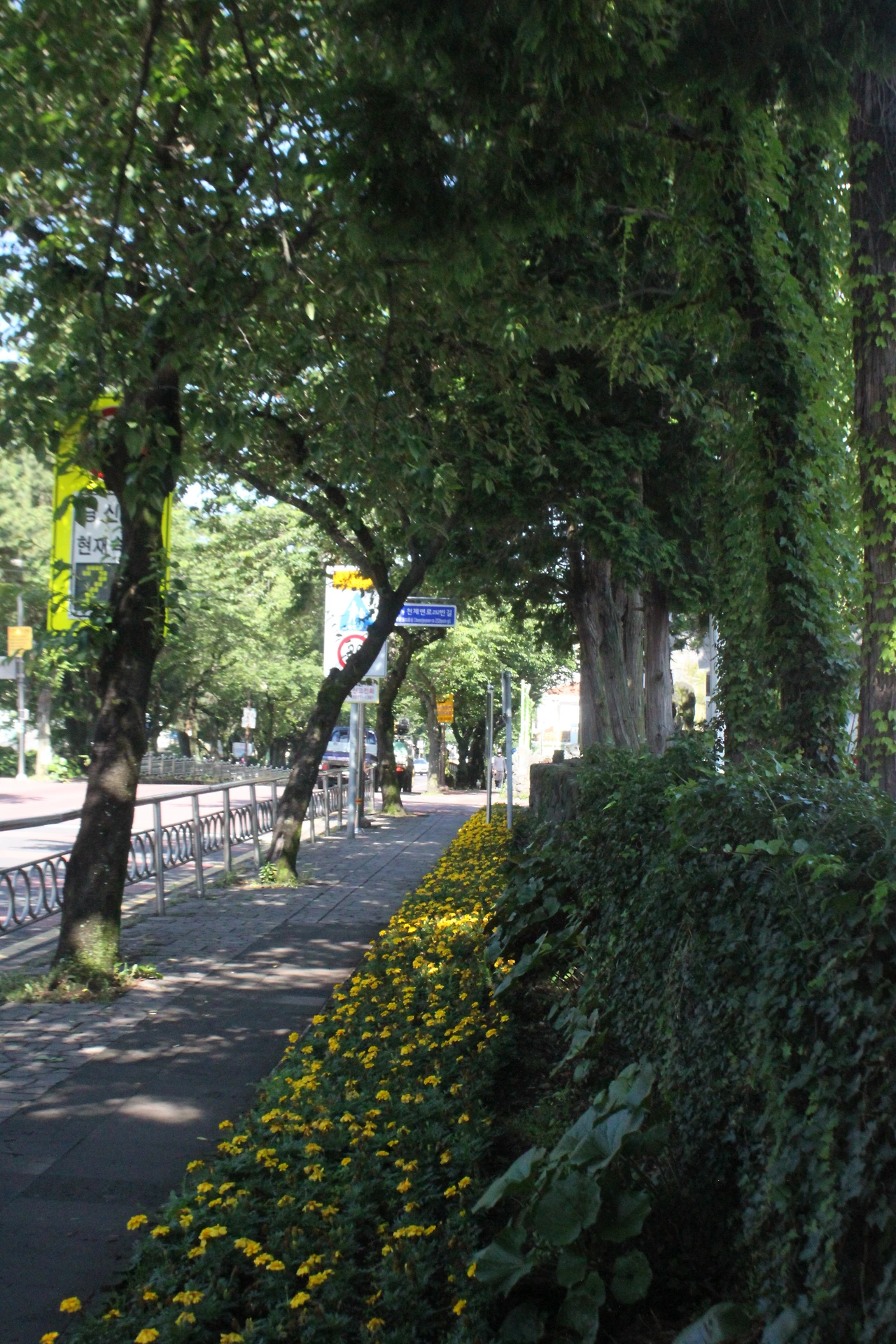 아침 일찍 일어나 창밖을 바라보니 어제 비가 왔었냐는 듯 하늘은 맑고 '민중각 게스트하우스 옥상'에서 바라본 '한라산'도 선명하고 웅장했다. 오늘 그 '한라산'을 가자니 조금 맘이 내키지 않아 급 변경한 곳이 '올레길 12코스' 서귀포에서 가기에 길이 애매하지만 전에 근처까지 다녀본 기억이 있어 바지런히 서일주 702번 버스를 타고 갈아타는 곳에 도착했다. 그 공간은 추사 김정희의 유배지 근처여서 한편 가볼까도 싶었지만 길을 걸을 시간이 바쁜 탓에 서둘러 움직여야 했다. 더더군다나 산간 지역으로 가는 버스가 자주 없어서 한 번 놓치면 기다리는 시간을 무시할 수없어 바지런히 12코스 시작점으로 이동했다.