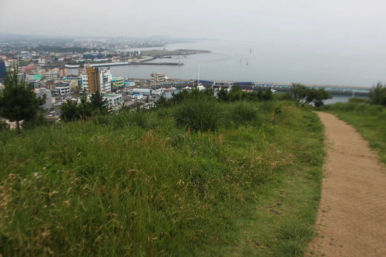 '말 모양 등대'를 거쳐 '도두 추억의 거리'를 지나 게스트하우스에 들러 물 한잔을 마신 후 '도두봉 정상'에 오른다. 정상에는 수학여행 온 예쁜 여고생들과 선생님들이 추억 만들기에 여념 없다. 조용히 사진 몇 장만 찍고 방해하지 않고 내려온다.