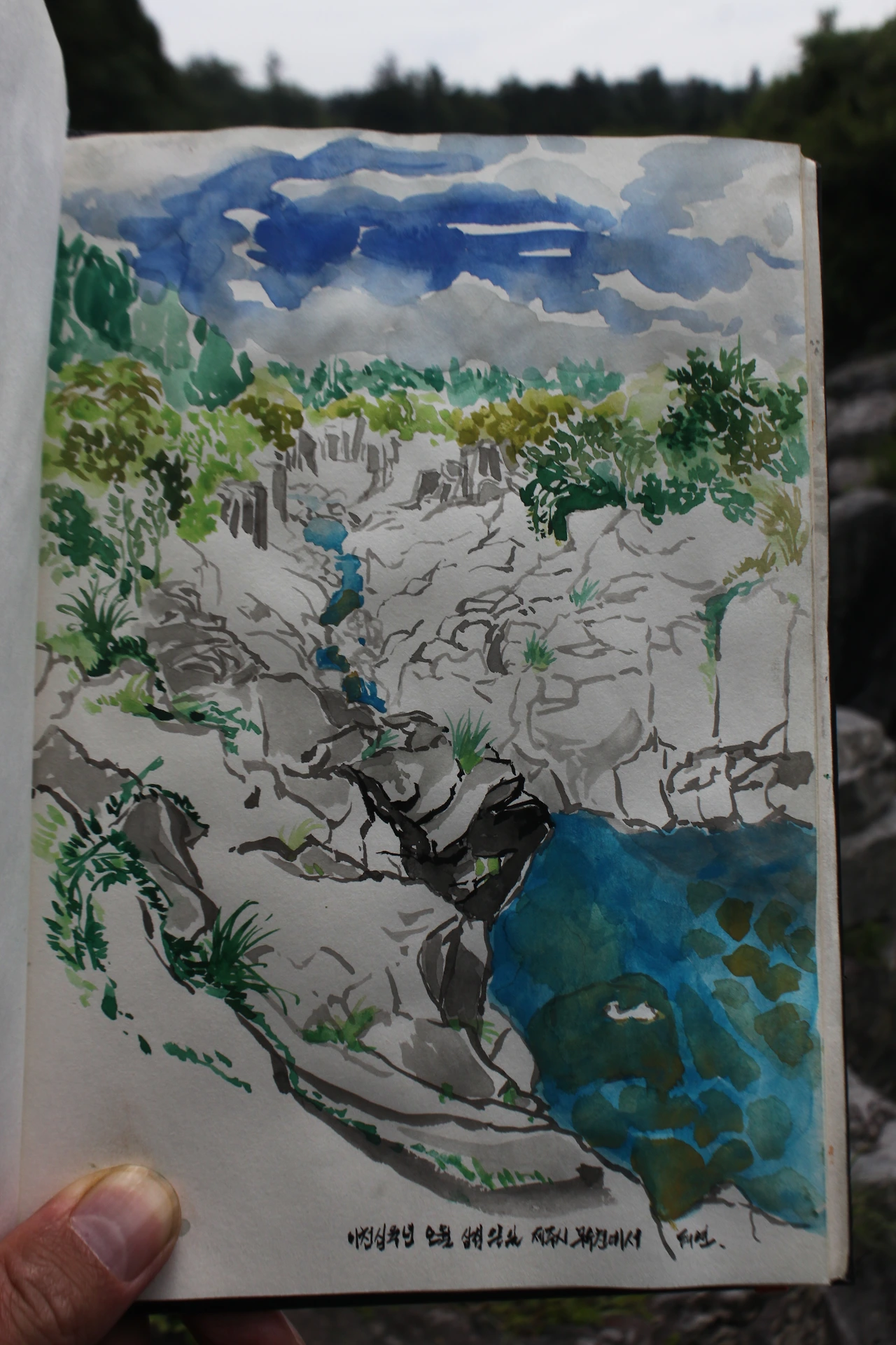 개발의 논리가 팽창해 있는 그곳에 아직은 아름다운 생얼을 간직하고 있다는 이야기다. 그 길을 따라 한참을 내려가다가 '무수천트멍길' 쯤에서 스케치북을 펴고 스케치를 한다.