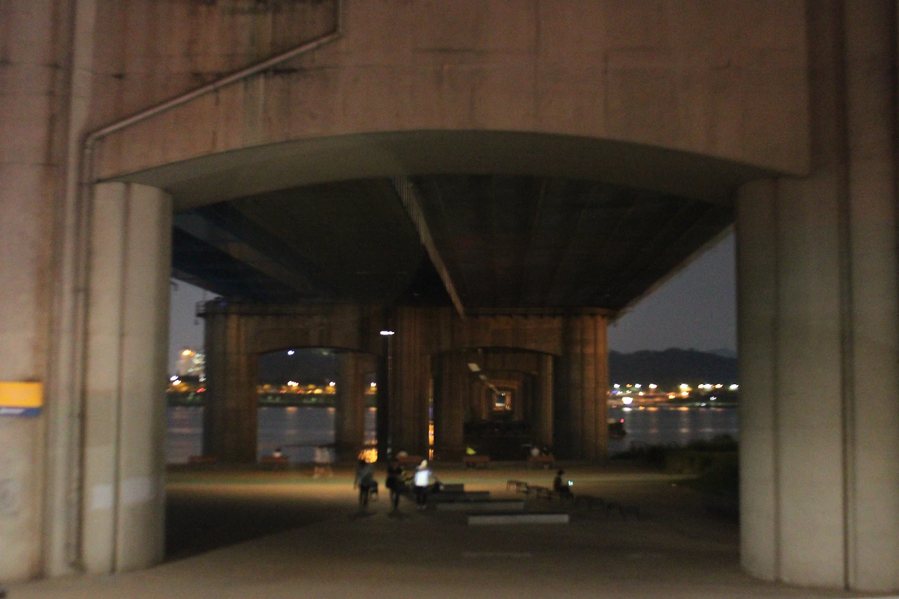 그 흐름에 맞춰 걷다가 동작대교 다리가 보이는 곳에서 꺾어 '용산 가족 공원'으로 방향을 튼다.