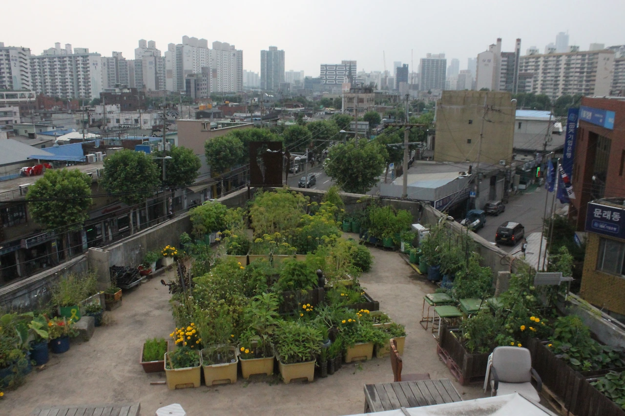 그 옥상의 작물들에 감탄하다가 다시 더 위로 올라가는 사다리를 발견하고 그 옥상의 옥상에 올라서서 문래동을 한눈에 조망한다. 여기는 내가 살지 못했던 또 다른 공간의 또 다른 재미가 있는 곳이다.