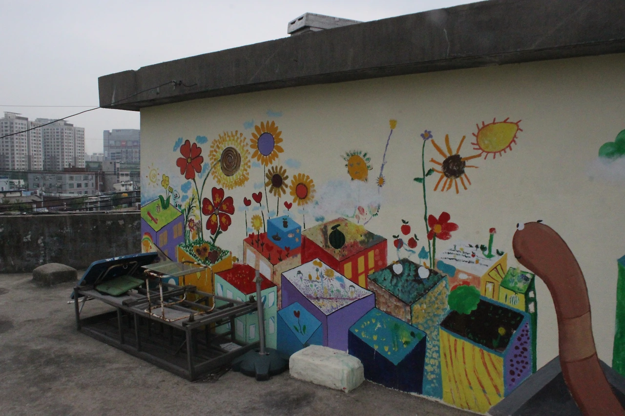 여하튼 그 문래동 예술문화길은 초여름의 정취를 이렇게 느끼게 해 주고 있었고, 사진을 찍으며 어쩌다 올라선 건물 옥상에서 지방 어느 도시의 텃밭보다 아기자기하고 잘 만들어진 옥상농장을 보게 되었다.