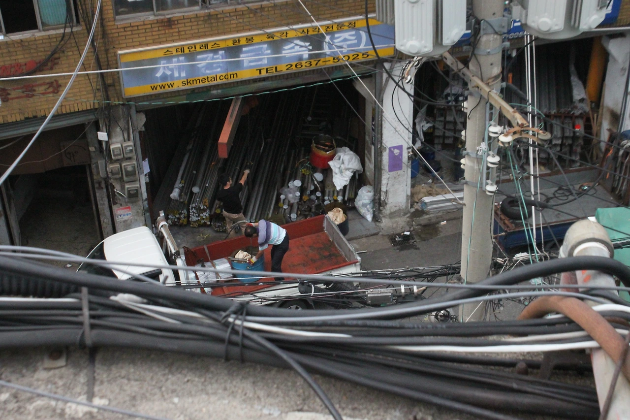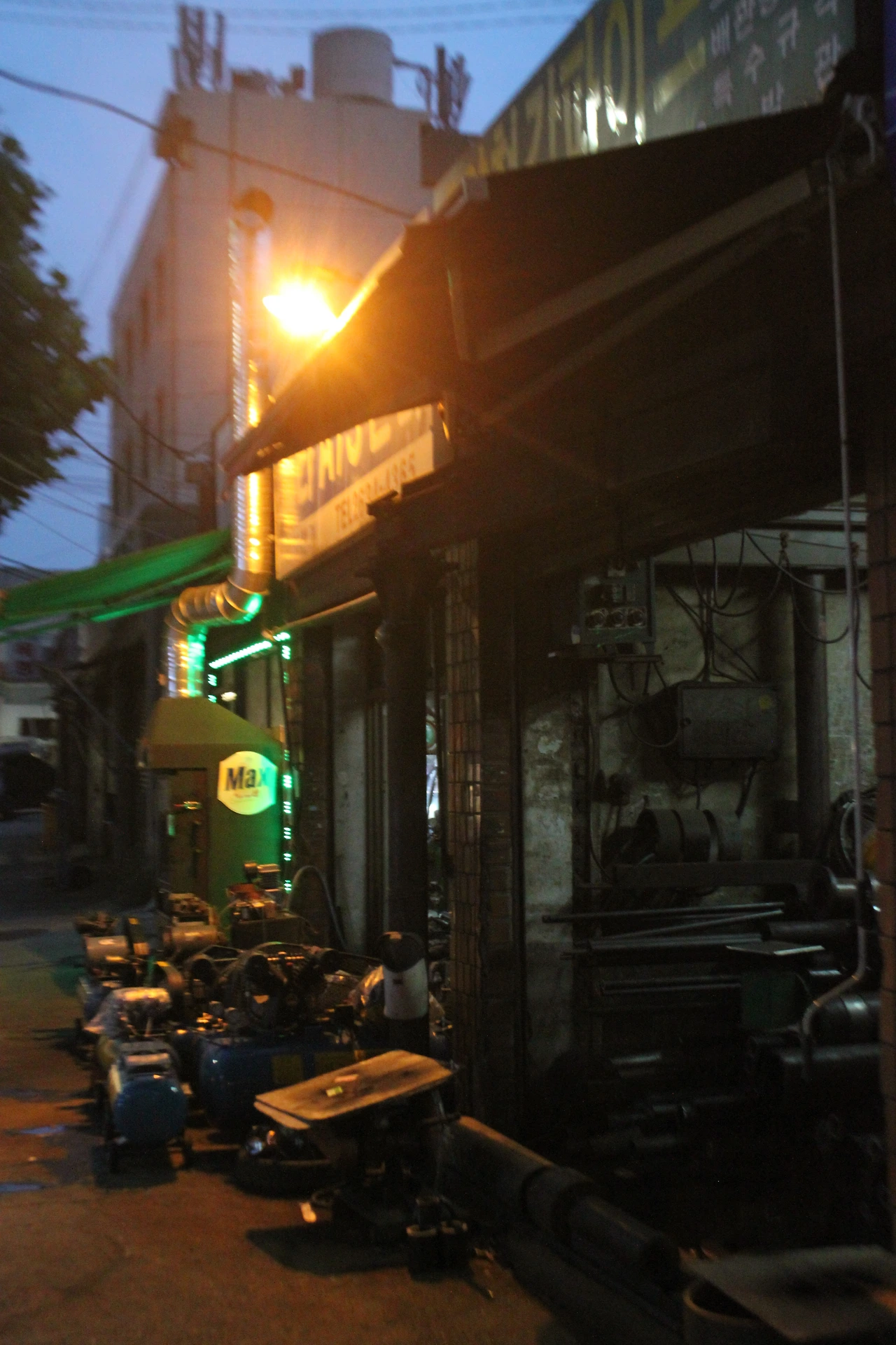 선반, 프레스, 사출, 성형 등 공업 시간에 배웠던 것들이 실시간으로 실시되고 있는 몇몇 라인만 연결하면 폭탄도 만들 수 있을 것 같은 영세 공업 상가의 집합지다.