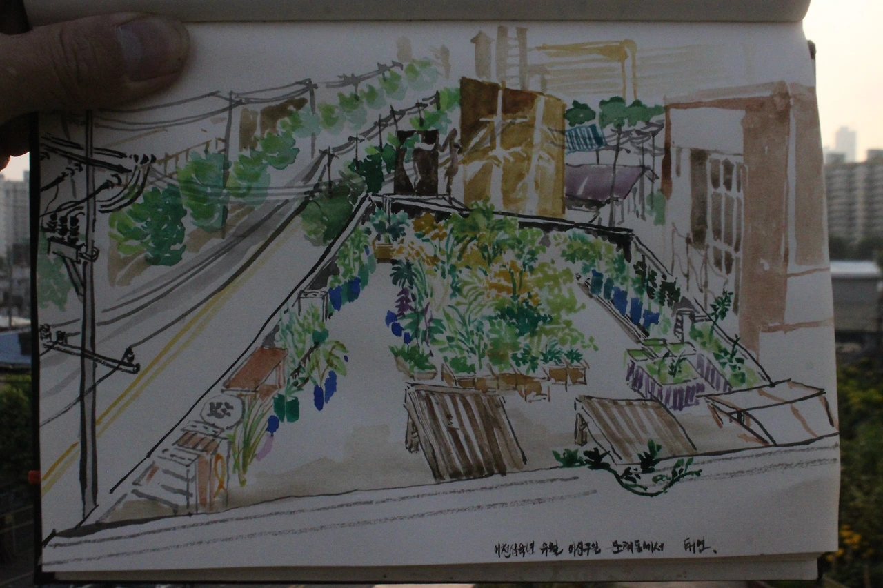 이 재미난 공간에 경의를 표하며 스케치북을 꺼낸다.