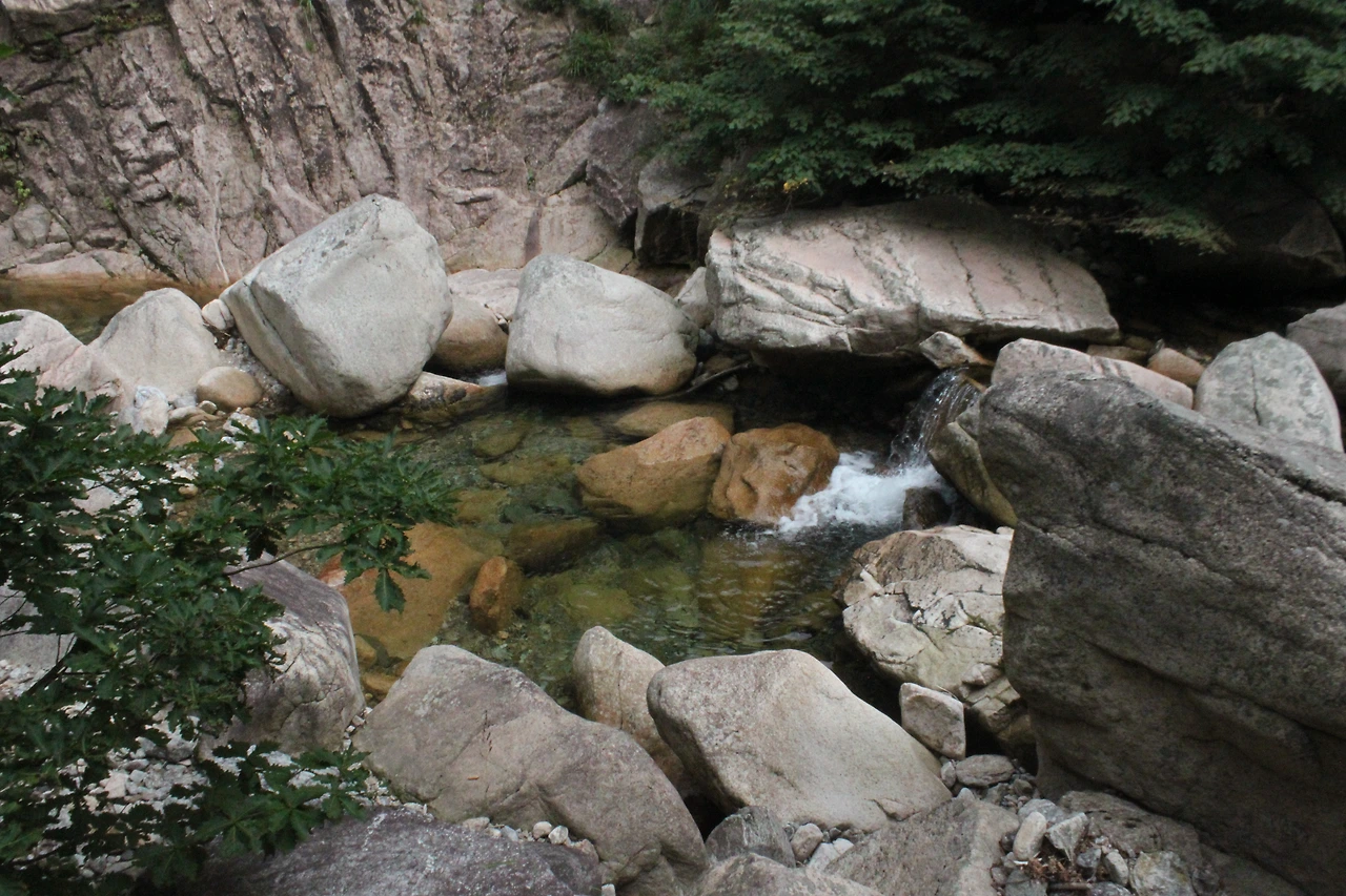 물의 색깔들은 물이 없는 듯 있는 듯 투명하고, 점점 밑으로 내려갈수록 옅은 옥색을 띤다.
