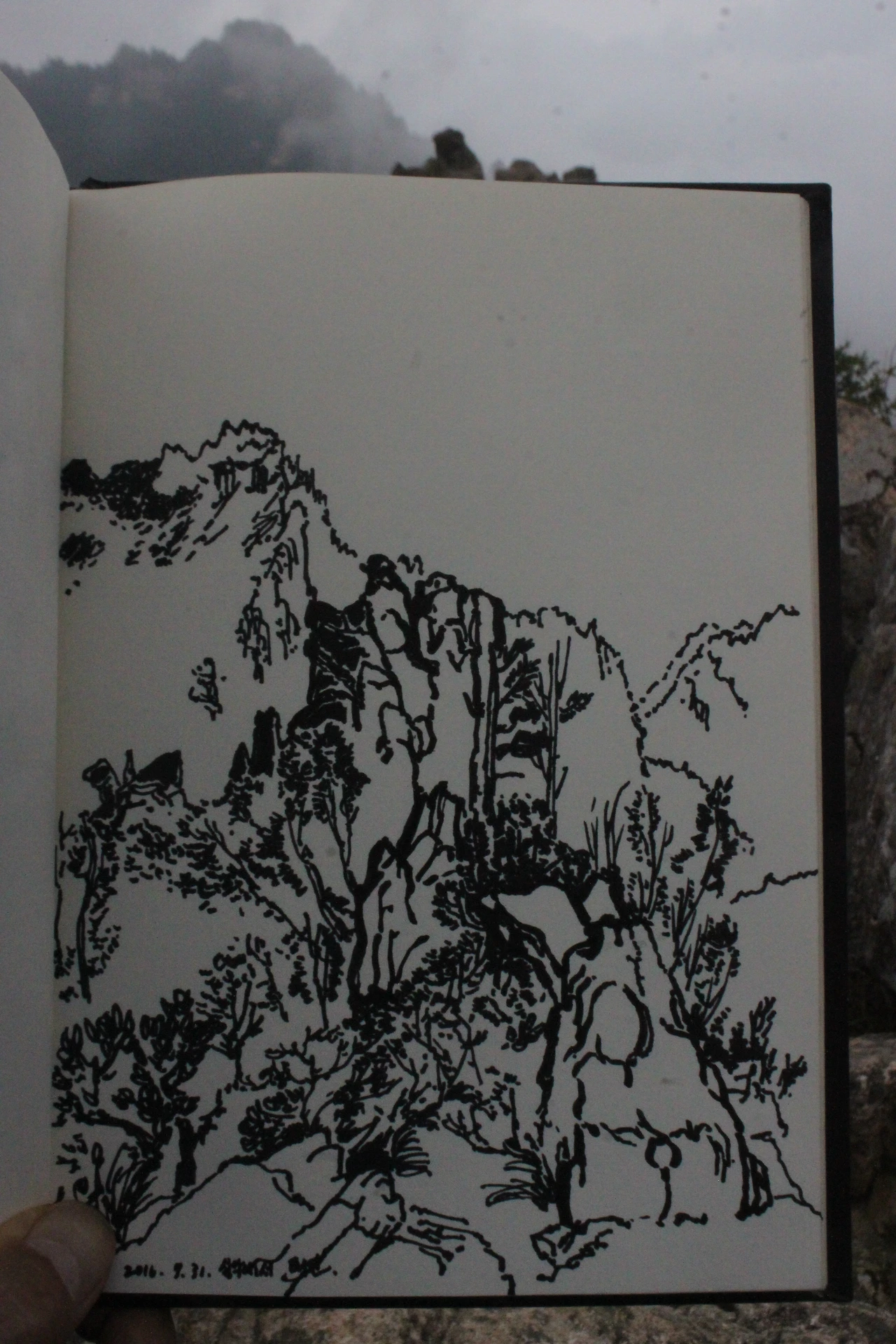 하지만 이 절경을 보고 아무런 기록도 남기지 않음이 너무 아쉬워 그냥 아쉬운 데로 모양을 잡아간다. 굵기 조절이 안되면 모양이라도 있지 않은가?