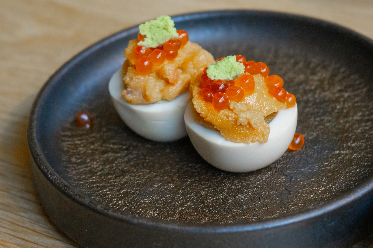 잘 잘려진 계란 위에 우니, 와사비, 연어알이 올려진 요리다. 첫 저녁 식사 방문 때 우니가 먹고 싶어 주문했는데 생각 그 이상으로 맛있어서 재주문한 요리다. 한 입에 쏙 들어가는 바람에 없어져버리는 것이 아까운 요리다. 역시 맛있다.