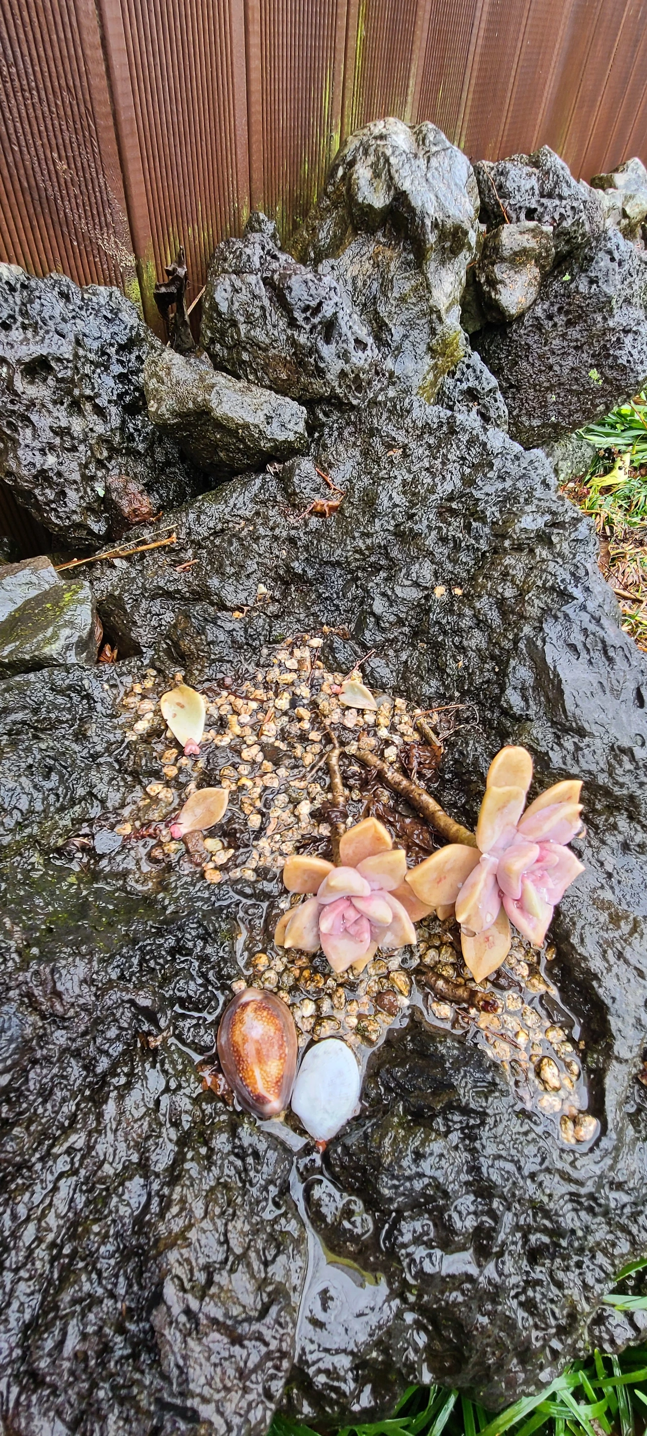 비를 맞아 더 빛나는 돌 틈의 용월들