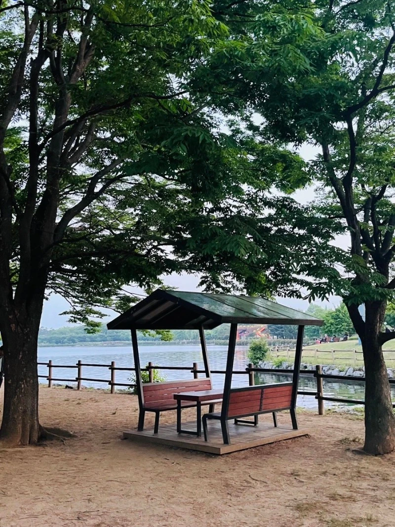 청명한 호수가 정원을 에두르며 번지는 푸른 빛.