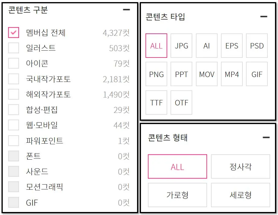 검색어만 입력하면 너무 많은 이미지가 검색된다. 그래서 조건을 설정해 범위를 좁힌 후에 찾는다. 필요한 것이 사진인지 일러스트인지, 가로로 길쭉한 것인지 세로로 긴 것인지, 한국 사진인지 외국 사진인지, jpg인지 다른 형식 파일인지 등을 설정해서 후보를 줄이면 이미지 15,629장을 확인해야 하는 일을 막을 수 있다.