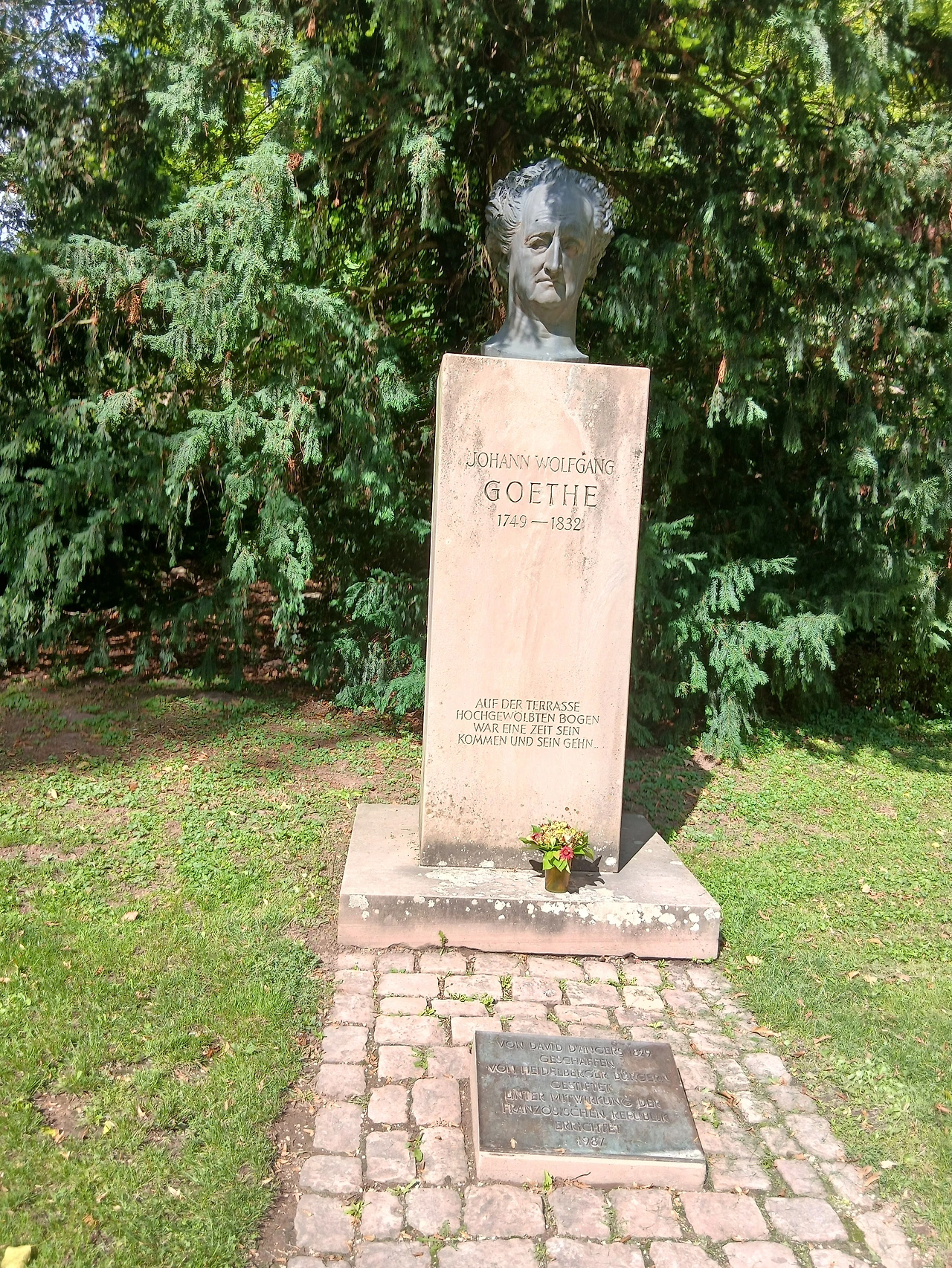 독일의 유명한 관광지 하이델베르크 고성에 갔다. 파란 하늘을 배경 삼아 산 중턱에 우뚝 서있는 성은 한 폭의 그림처럼 아름다웠다. 성 위에서 바라보는 도심도 예쁘게 보였다. 성 주위에 독일의 유명한 소설가 괴테의 동상도 있었다. 이곳이 괴테의 고향이었다. 이런 아름다운 환경이 괴테에게 좋은 감성과 영감을 주었을 것 같았다.