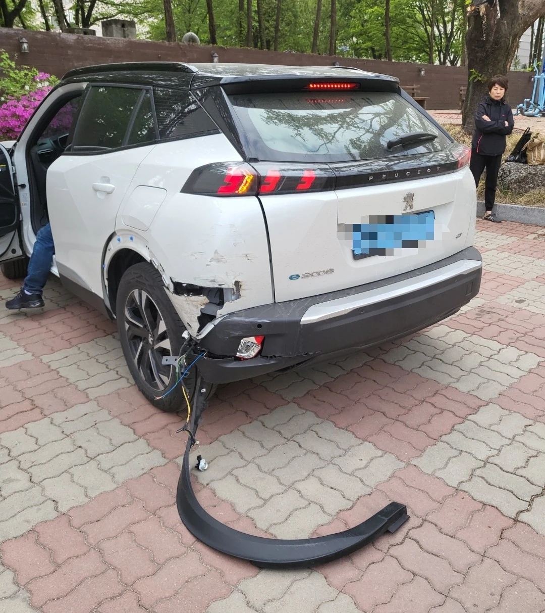 차량 뒤쪽이 망가진 채로 이 차를 타고