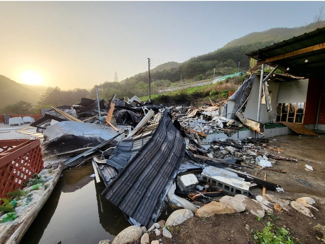 조금 전 화재로 무너진 집처럼