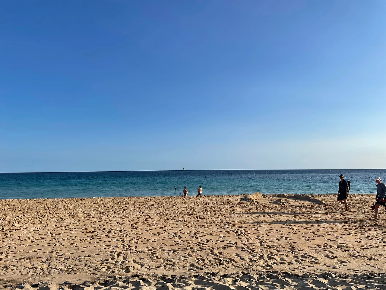 북쪽에 위치한 우리 숙소에서는 남부 해안에 위치한 이 해변까지 2시간 반 정도 운전을 해야 도착할 수 있었다. 편한 여행을 추구하는 관광객에게는 최적인 해변이다. 바로 앞에 호텔과 콘도가 즐비해있고, 해변이 아주 넓고 돌이나 바위가 없이 부드러운 모래로만 이루어져 있어서 휴가철에 가족단위로 오기에 딱인 곳이다.