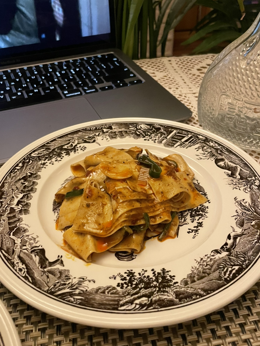 초인종이 울리고, 문 앞에는 따끈한 배달음식이 도착해 있다. 비닐봉투를 여는 순간, 기름진 불향이 새어 나온다.