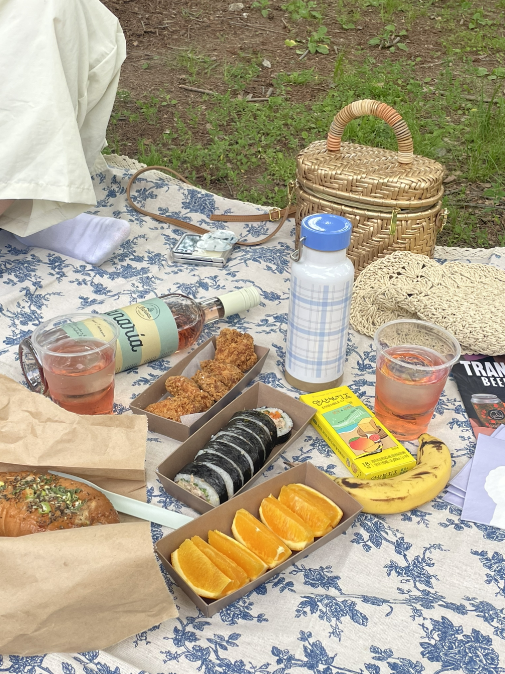 B가 가방에서 빵이 들어있는 봉투와 와인을 꺼냈다. 돗자리 위로 간단한 도시락과 과일, 간식이 놓여지자 꽤 그럴싸한 소풍의 모양새가 되었다.