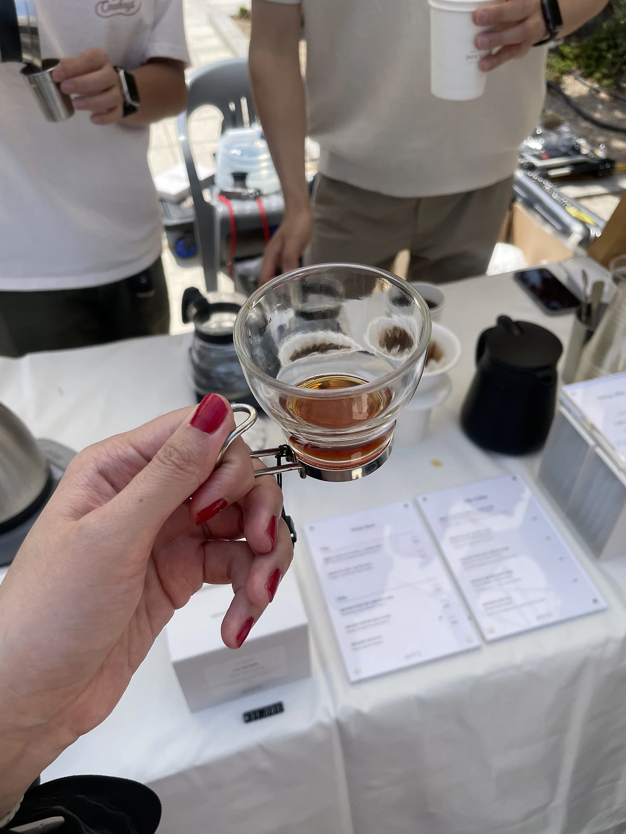에스프레소잔에 고서라는 커피를 받았다. 태운 나무와 감초의 미세한 단맛이 겹쳐지고 유난히 진한 맛이 묵직하게 입안에 남는다.