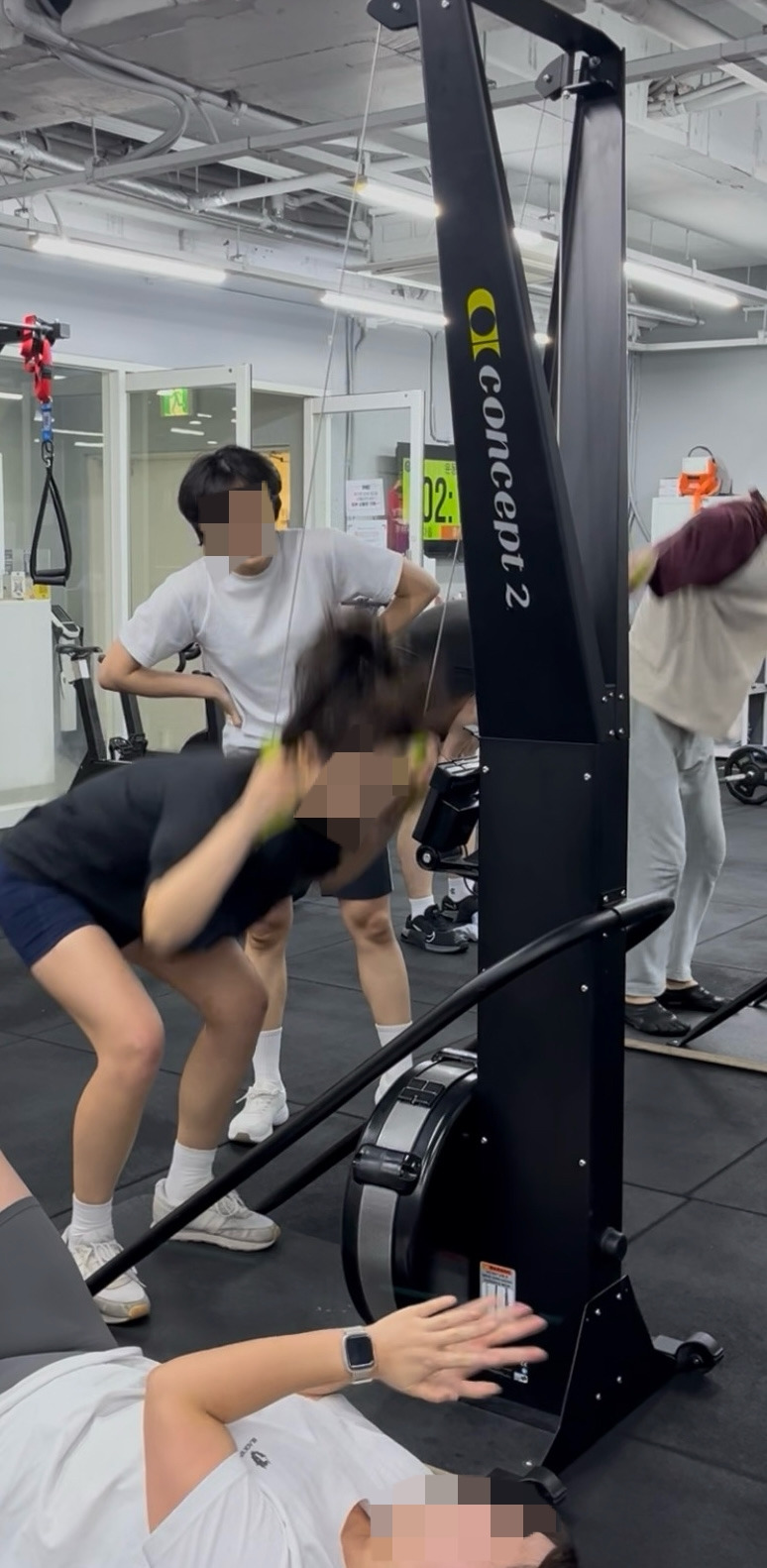 아침엔 상체 편식 동료의 잡도리를 열심히 해주며, 로잉 머신을 당기는 옆에서 함께 당겨준다며 줄다리기를 해주고, 스키를 당기는 앞에서는 박자에 맞춰 박수를 쳐주었다. 열띤 응원에 아아악 소리내며 열받아 하지만 할당량까지 머신을 타야 하는 모습이 매우 웃겼다.