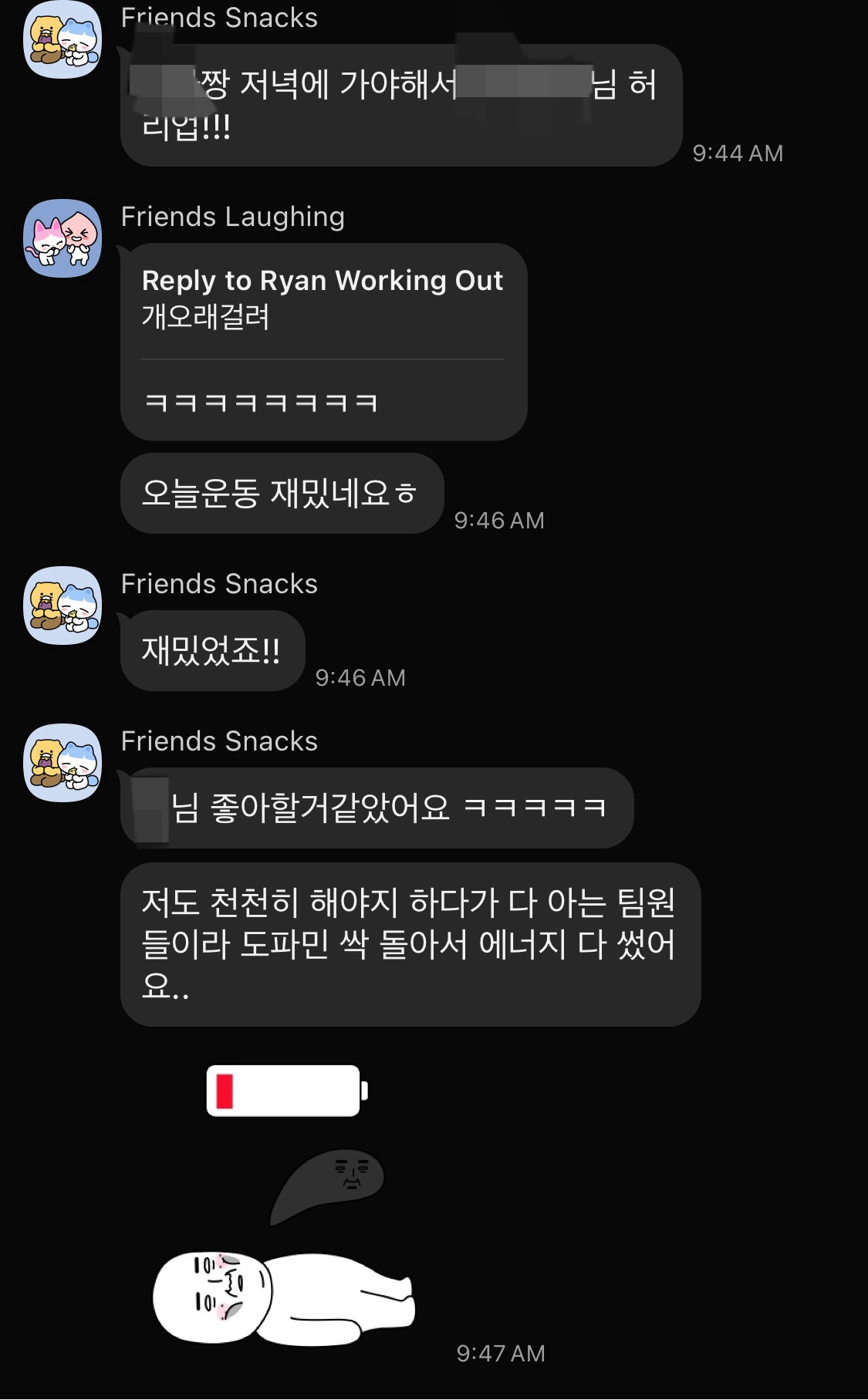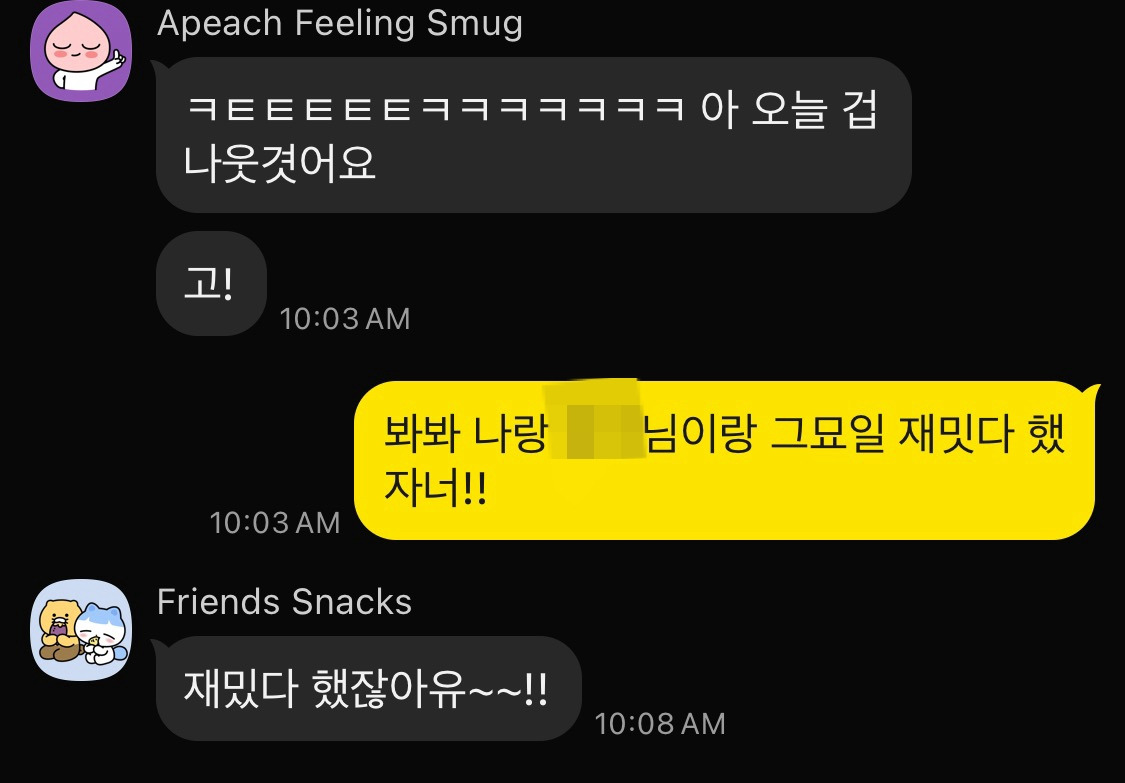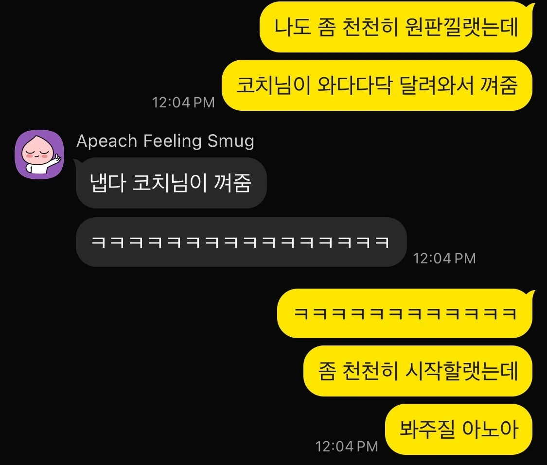 금요일까지 운동을 마치고 나니 재밌었다는 이야기를 하느라 카톡방이 떠들썩했다.