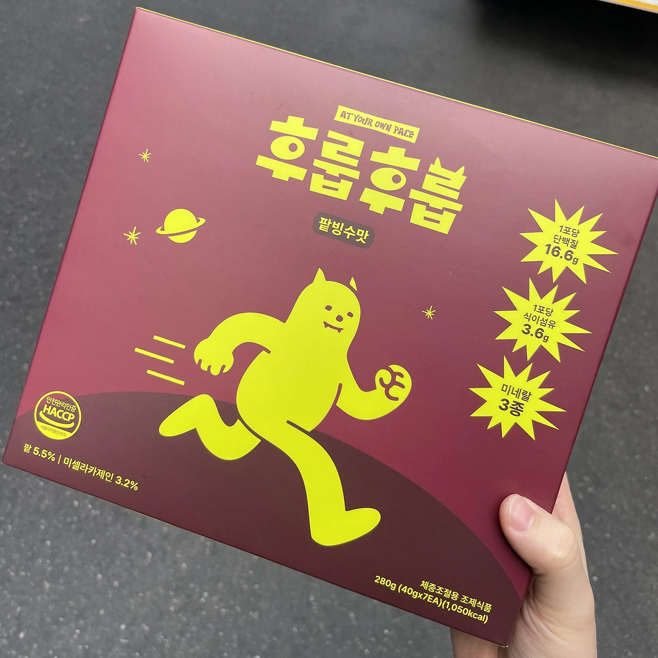 상품은 무려 7개나 들어있는 단백질 셰이크 후룹후룹. 여담으로 약간 얼려서 먹으면 팥빙수가 따로 없다.