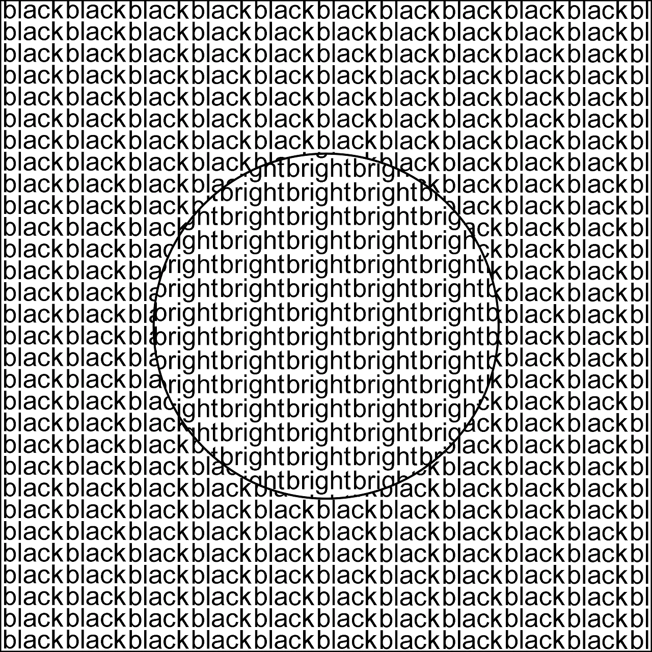 그림 3은 인간인 우리가 보는 것이니 건너뛰고 로봇이 보는 그림 4에 대해 설명해 보자. 로봇이 이렇게 느낀다는 말이 아니라 로봇이 그림 3으로부터 받아들이는 빛의 양을 숫자로 표시할 수도 있지만 단순한 단어로 표시를 했을 뿐이다. 검은색 영역에서 반사되는 빛의 양이 없다는 것을 black이라는 단어로 나타냈고, 같은 방법으로 흰색 원 부분에서는 밝다는 bright로 표시를 했다. 로봇이 감지한 빛의 양을 숫자로 표시를 하든 단어로 표시를 하든 그것은 단순한 물리량이다. 빍음(흰색)이나 어둠(검은색)으로 느끼는 것이 아니라 단지 물리량으로만 받아들일 뿐이다. 그래서 로봇의 눈은 갑작스러운 밝은 빛에 눈이 부실 이유가 없다. 눈이 부셔서 눈을 감을 필요도 없고 인공눈의 렌즈를 통해 들어온 빛의 물리량을 측정할 뿐이다.