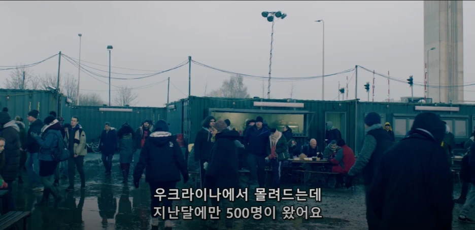작품에서는 동시에 전쟁 난민을 둘러싼 포용 국가들의 갈등도 다루었습니다. 작품 속 우크라이나 난민들은 유럽국으로 이동하여, 마을을 이루고 살고, 망명 신청 결과를 기다립니다. 그러나 인도주의적으로 난민들을 환영하던 사람들은 전쟁이 길어질고, 그들의 삶 또한 어려워지자(물가 상승, 집값 상승, 실직률 증가 등) 난민 수용에 반대하는 목소리를 내기 시작합니다. 그리고 이는 시위 등 사회적 갈등으로 번집니다. 이러한 갈등을 해소하기 위해 선거 때만 되면 정치인들은 난민 정책을 가지고 나옵니다. 누가 당선되느냐에 따라 난민들의 거처는 불투명해지는 모습은 현실과 크게 다를 바 없는 모습입니다.