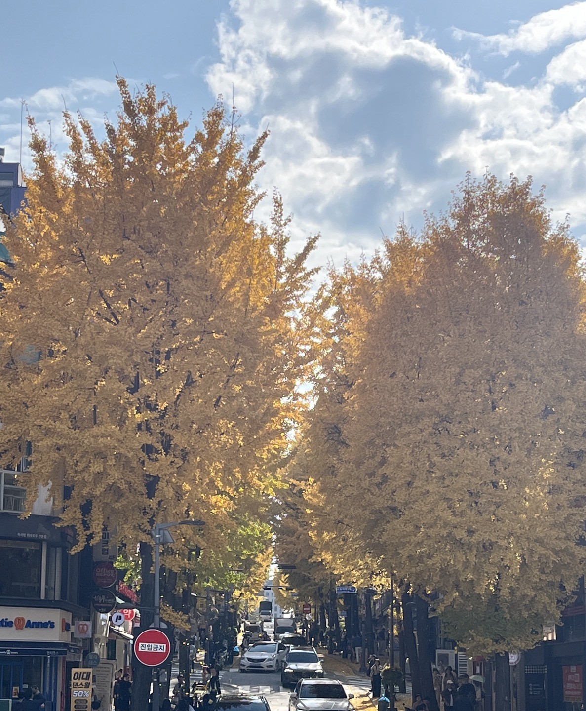 포럼이 끝난 후 캠퍼스를 거닐었다. 11월 둘째 주 캠퍼스는 늦가을의 정취로 가득 차 있었다. 올해 여름의 극심한 무더위 때문에 단풍이 예쁘지 않을 거라고 했지만 캠퍼스의 단풍은 젊은 학생들의 에너지 덕분인지 여전히 아름답고 찬란했다. 정문 앞 도로 양옆으로 늘어선 은행나무는 노랗게 물든 잎들로 마치 물감이라도 뿌려 놓은 듯 화려했다. 짧아진 가을이 아쉬웠는데 캠퍼스의 풍경이 그 아쉬움을 달래주었다.