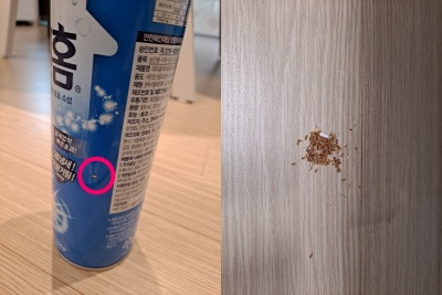 손바닥을 쳐서 잡고, 신문지 뭉치로 때려잡고, 잡아도 잡아도 그 수가 줄지 않는다. 결국 마트에서 <살충제>를 구매했다. 내가 알던 그 제품은 외관 색깔과 디자인이 바뀌어 있었고 ‘수성’, ‘냄새 없이 빠른 효과!’라고 쓰여있었다. ‘사람에게는 해가 적고 벌레는 잘 잡는다!라는 뜻이군…’