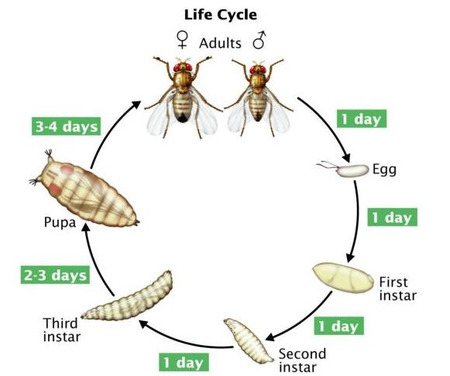 나는 며칠간 초파리와의 전쟁에서 승리했다는 생각에 우쭐해졌고 긴장이 풀려있었다. 하지만 곧 초파리 몇 마리가 다시 보이기 시작했다. ‘도대체 이놈들이 어디서 나오는 걸까?’ 다시 쓰레기통 안을 살펴보았다. 어느샌가 ‘노란색’ 알 몇 개가 안쪽면에 붙어 있었다. “지겨운 놈들…”