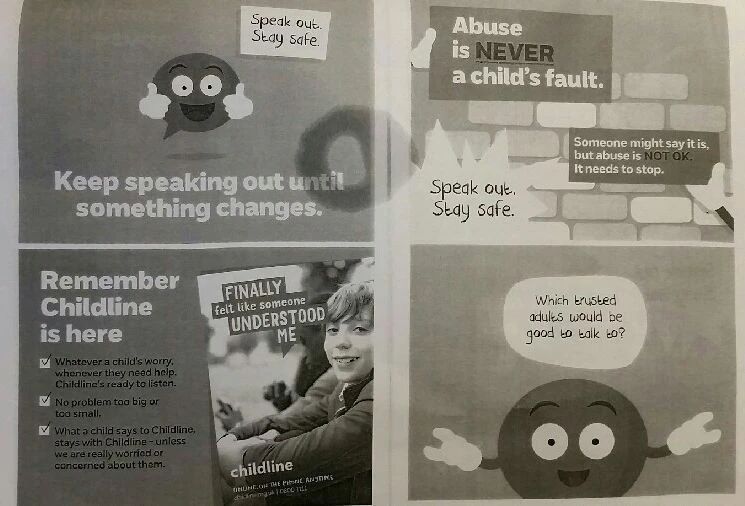 "응 엄마 오늘 많이 배웠어. 내가 집에서 엄마한테 하기 힘든 이야기나 고민이 있으면 ~080* **11~로 전화해서 언제든지 얘기하랬어... (그리고는 그 번호를 외우도록 노래와 율동으로 배운 걸 자랑하듯이 보여준다)"