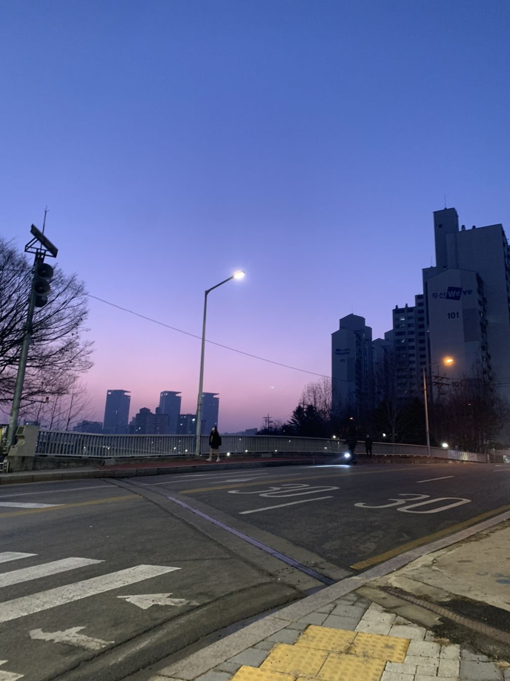 그날의 하늘빛을 나는 아직도 잊지 못한다. 새벽의 푸르스름한 기운과 붉게 떠오르는 태양이 맞닿아 보랏빛 경계를 이루던 장면을.