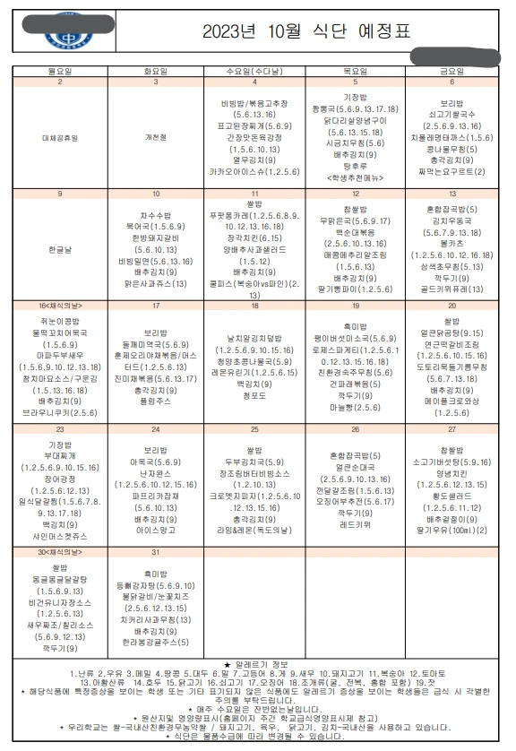 - 정답: 이달의 식단 안내문