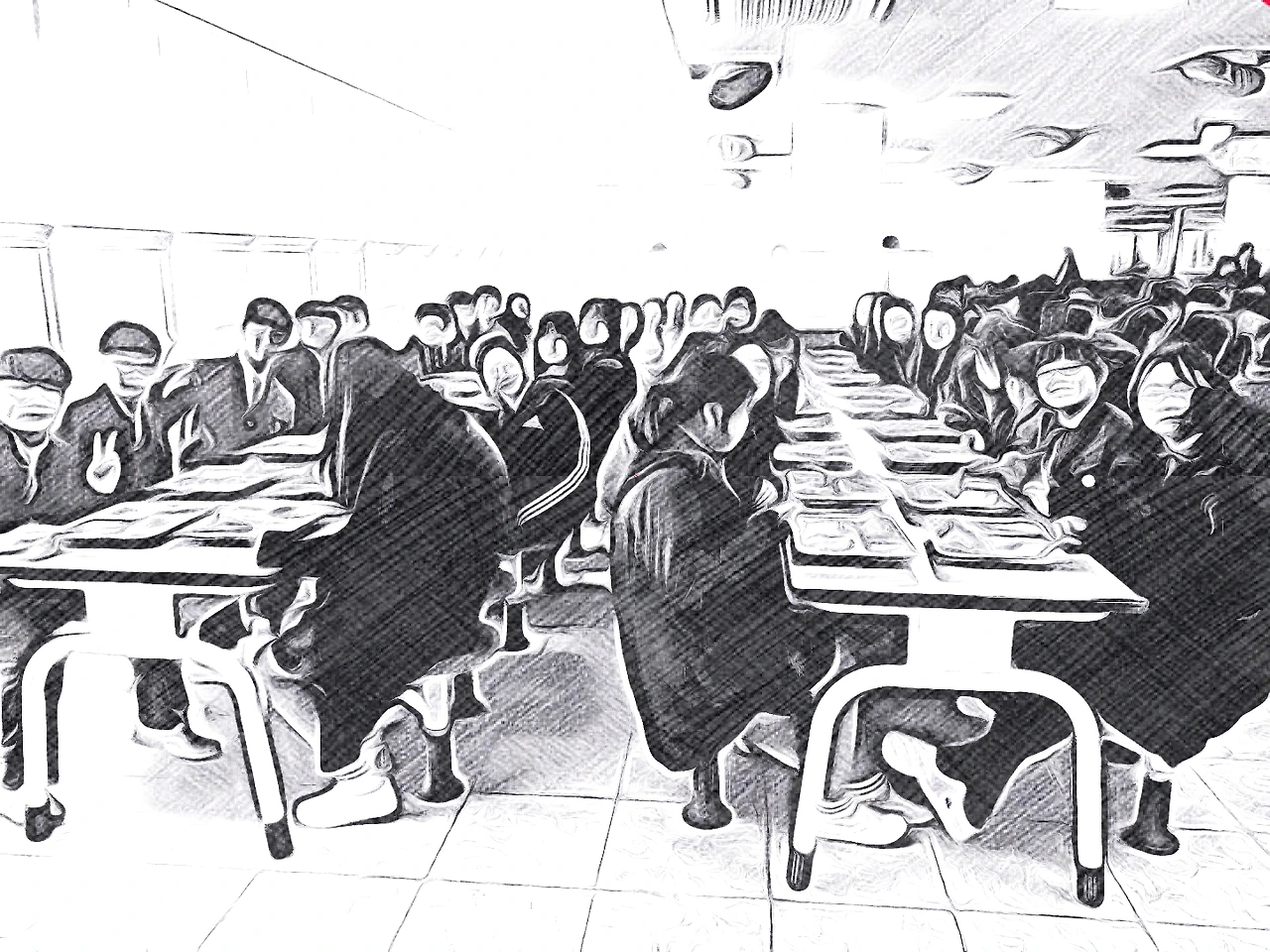 ‘오늘의 학교급식’은 무엇인지, 맛은 있는지 궁금해하며 눈을 부릅뜨고 식판을 스캔하며 지나가는 하이에나들. 학생들이 줄을 서서 차례를 기다리는 동안 오늘의 메뉴에 대한 호기심이 강하게 생길 것이고, 본능적으로 식탁 위 음식의 강렬한 냄새와 모습에 자연스럽게 시선이 쏠리기 때문에 김군은 그 하이에나들의 눈빛을 확실히 이해합니다. 하지만 김군은 그 하이에나들이 정말로 이 문제에 대해 고민해봐야 한다고 생각합니다.