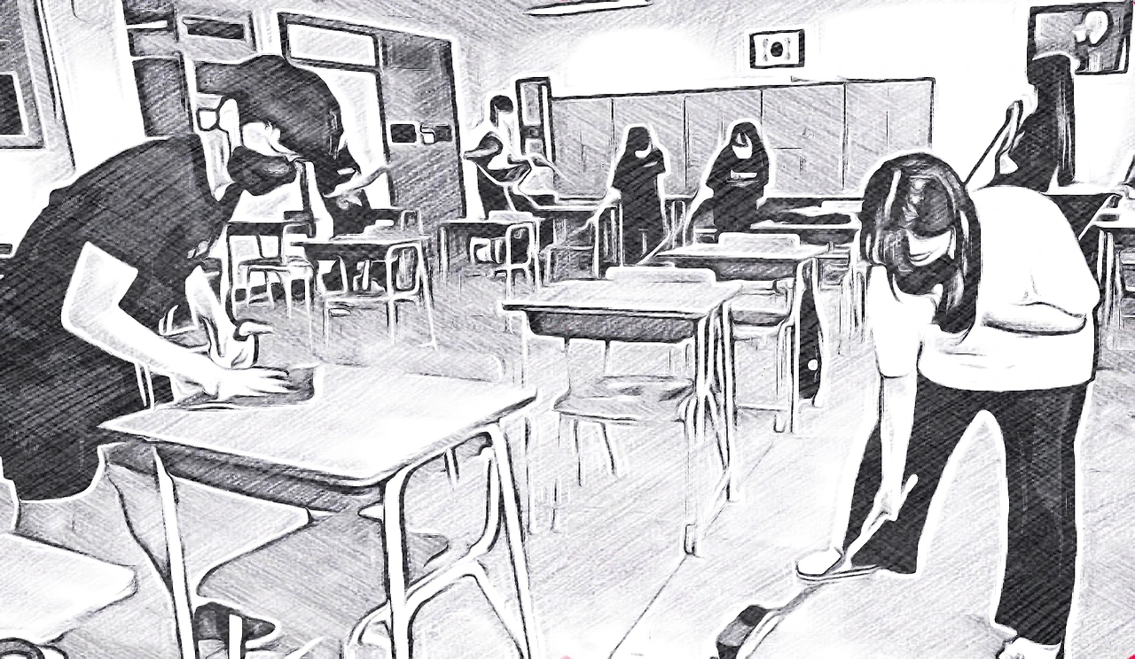 학기가 끝나고 학생들이 새 교실로 이사하게 되었을 때, 상태가 좋지 않은 책상을 물려받게 되는 학생들도 있습니다. 연필로 낙서한 것은 지울 수 있어서 괜찮을 수 있습니다. 그런데 새로 쓰게 되는 책상에서 커터로 새겨진 낙서를 발견하는 것은 정말 안타까운 일입니다. 나무 책상에는 칼로 만든 작은 틈이 몇 개 있으면 펜으로 종이에 글을 쓸 때 당연히 제대로 쓸 수가 없습니다. 누구나 책상을 좋은 상태로 갖고 싶어 합니다. 동시에 모든 학생은 공공재산을 양호한 상태로 다음 사람에게 물려줘야 합니다.