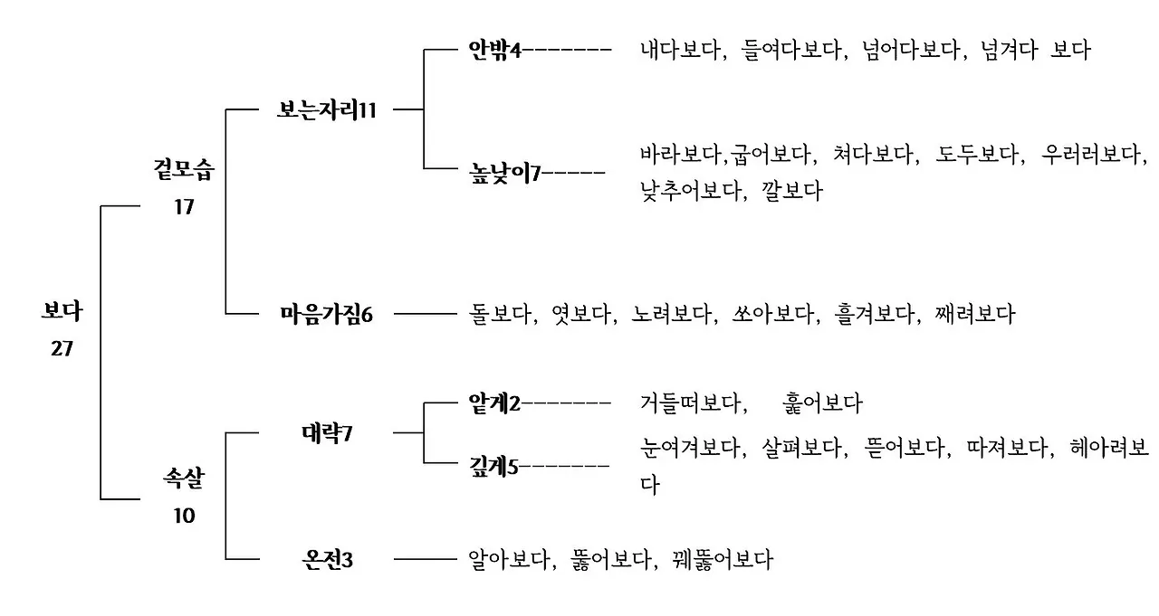 1. 우리말의 ‘보다’를 김수업 선생은 27 가지로 나누어 설명했습니다.